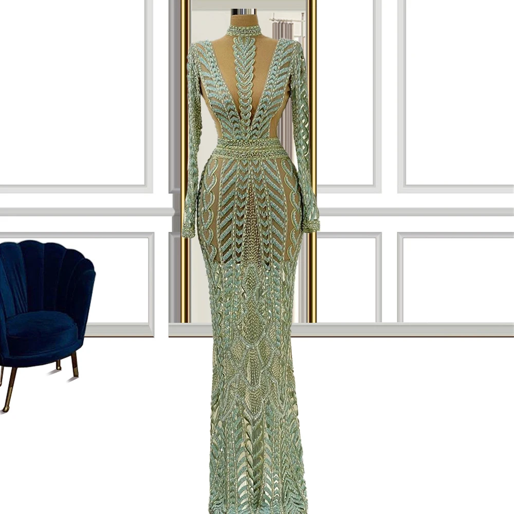 Floria Иллюзия вечернее платье женская одежда Вечерние платья с длинным рукавом и для особых поводов Новое 2021 вечернее платье, платье на выход