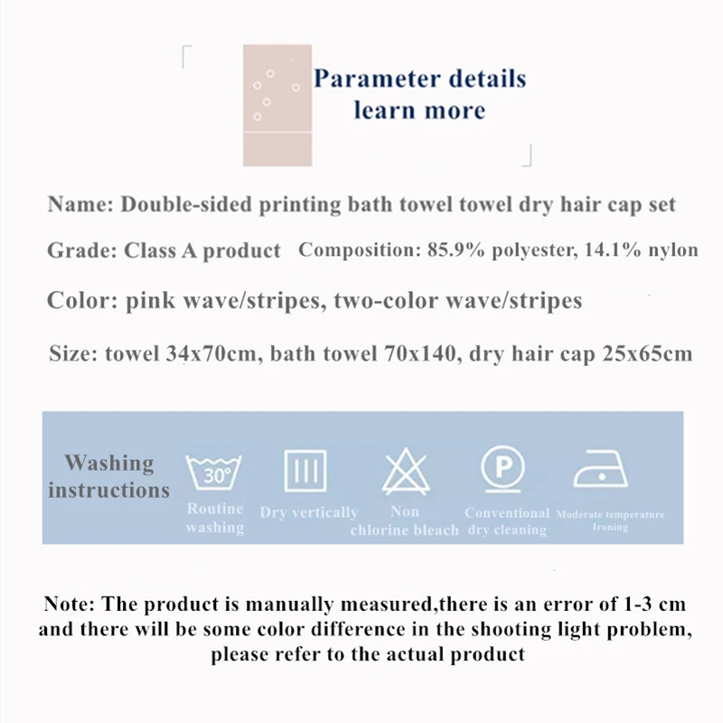 Size34x70cm Washcloths/74x140cm Bath Towels/25x65cm Hair Dry Towels