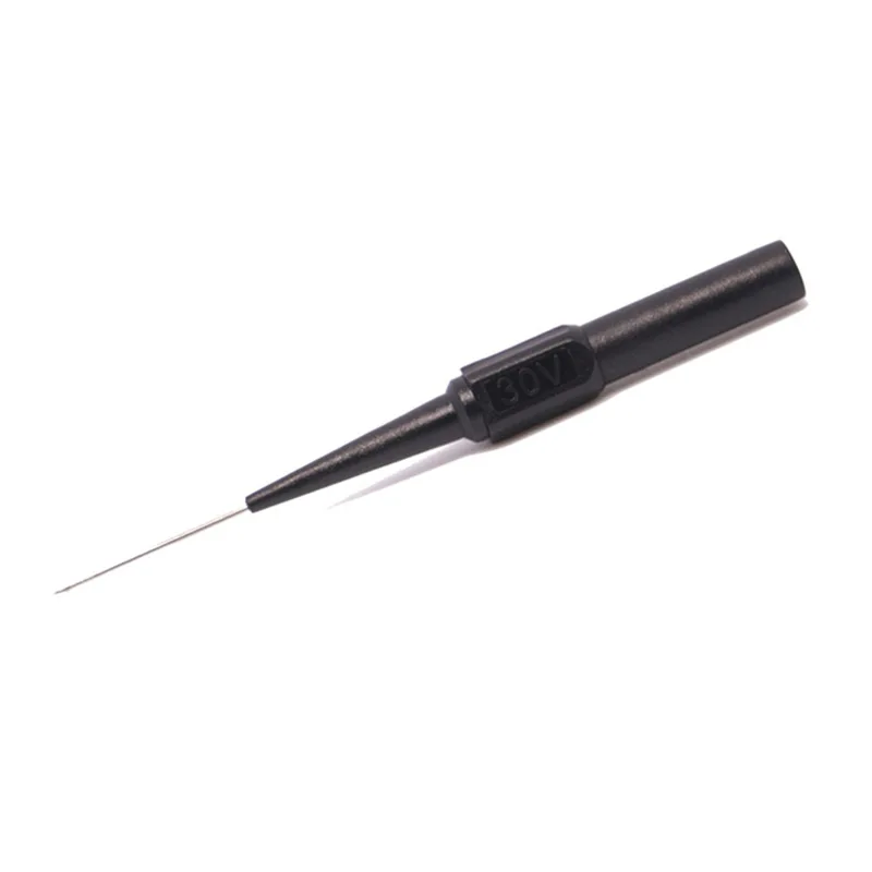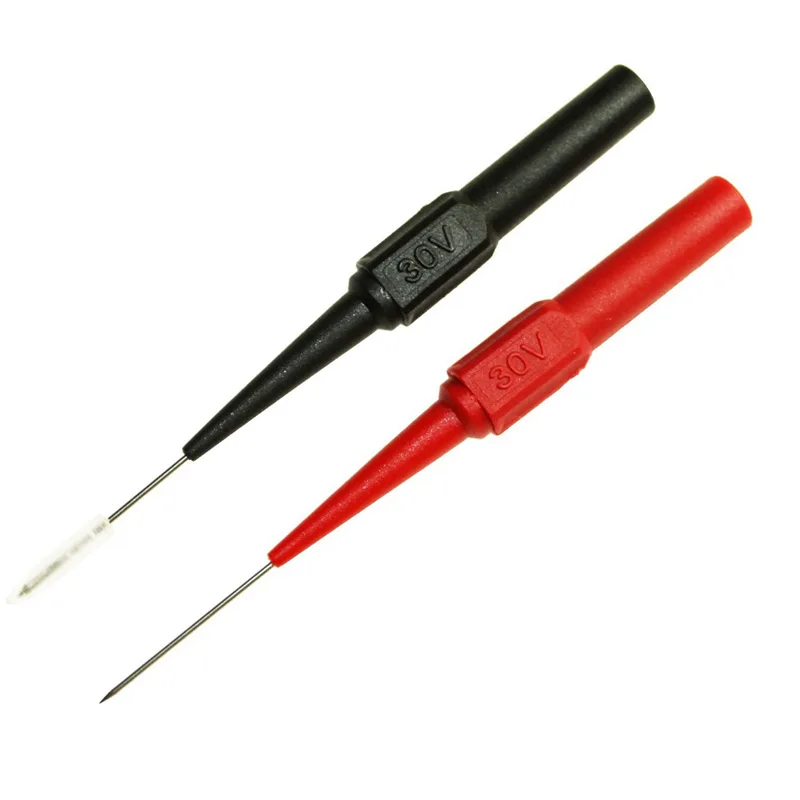 Размер: длина около 80 мм, диаметр зонда 0,7 ммТок: 1 АНапряжение: 30-60 вПодключение: 4 мм разъем BanabaЦвет: красный, черныйМатериал: нейлоновый пластиковый корпус, медный зондОсобенности:Антиломающиеся ручки, медные иглы, тестовые щупы более чувствительны и точны в тесте, хорошего качества и сверхпрочны.Острый медный зонд чрезвычайно тонкий и твердый, благодаря чему можно легко проткнуть оболочку кабеля для измерения, не разделяя его.Наконечник можно вставить в 4 мм разъем, а в конце можно вставить 4 мм банановый штекер.Подходит для автоматического обслуживания, тестирования телекоммуникации, тестирования строительной площадки и некоторых других неразрушающих испытаний кабеля.Посылка:1 х Красный измерительный щуп мультиметра2 x Черный тестовый щуп мультиметра