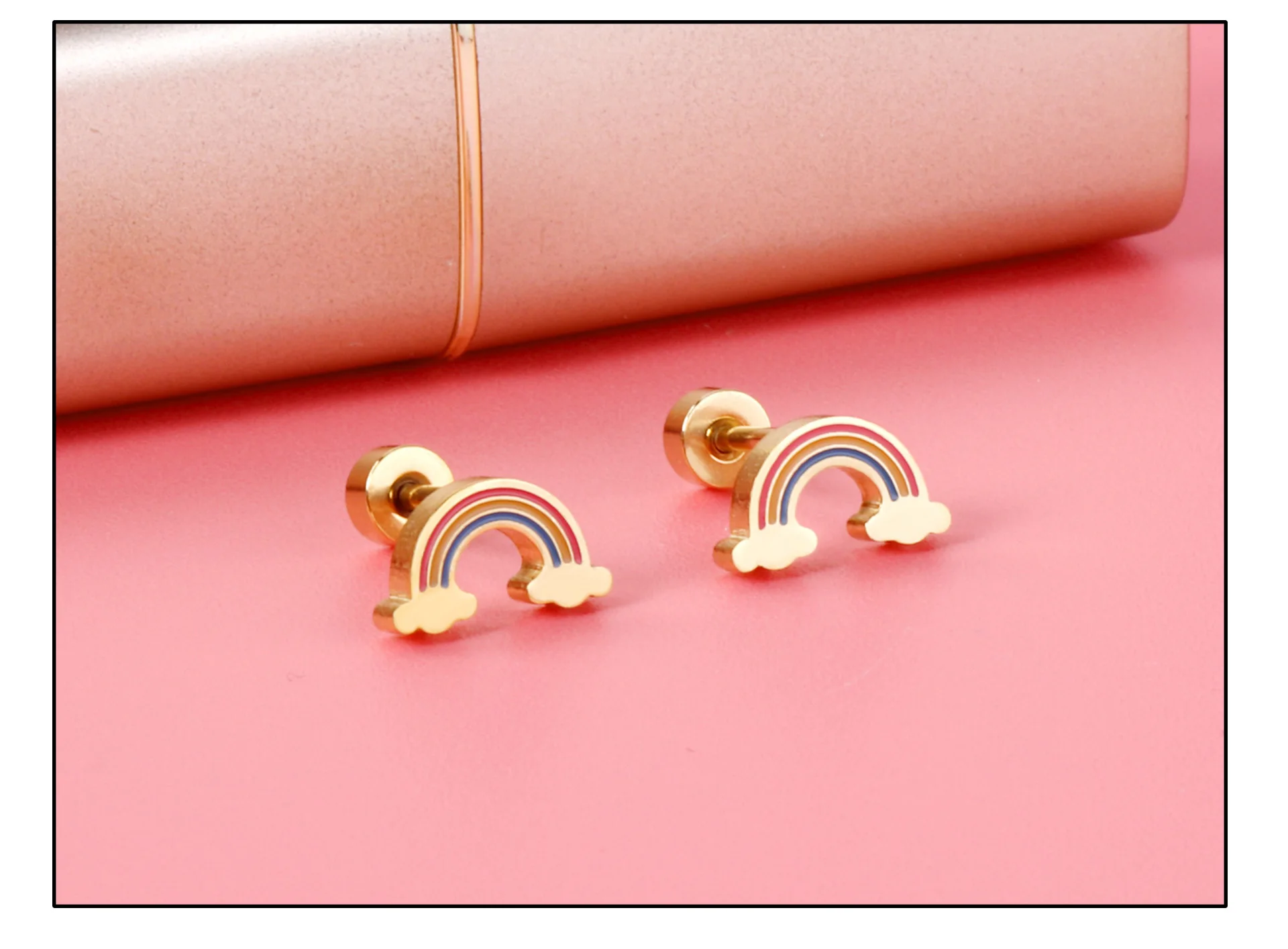 ASONSTEEL золотыеСеребристые Цветные Милые детские серьги-гвоздики 316L из нержавеющей стали радужные маленькие серьги-гвоздики для девочек, женская мода