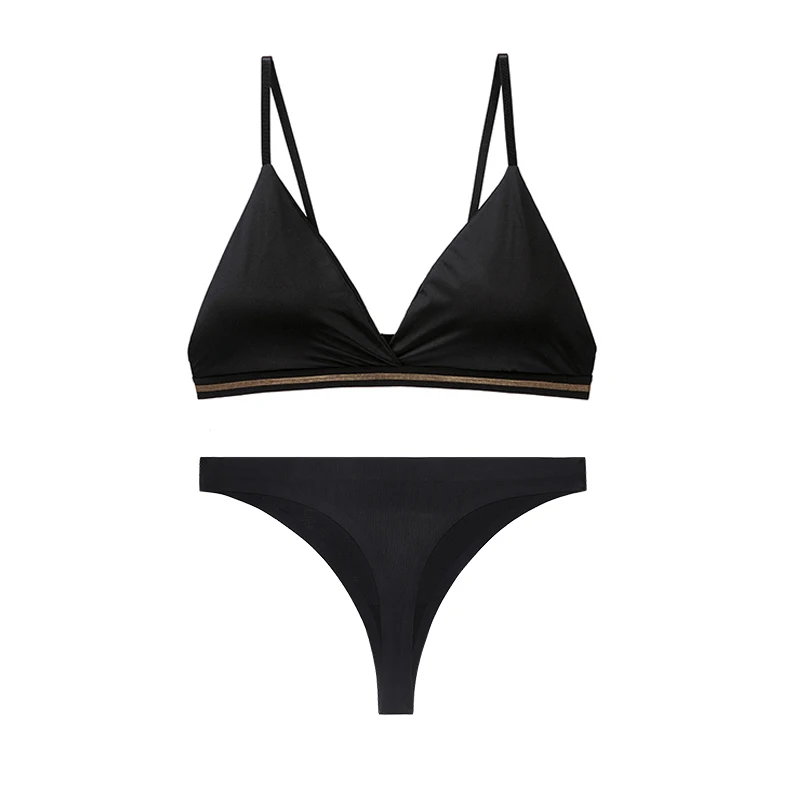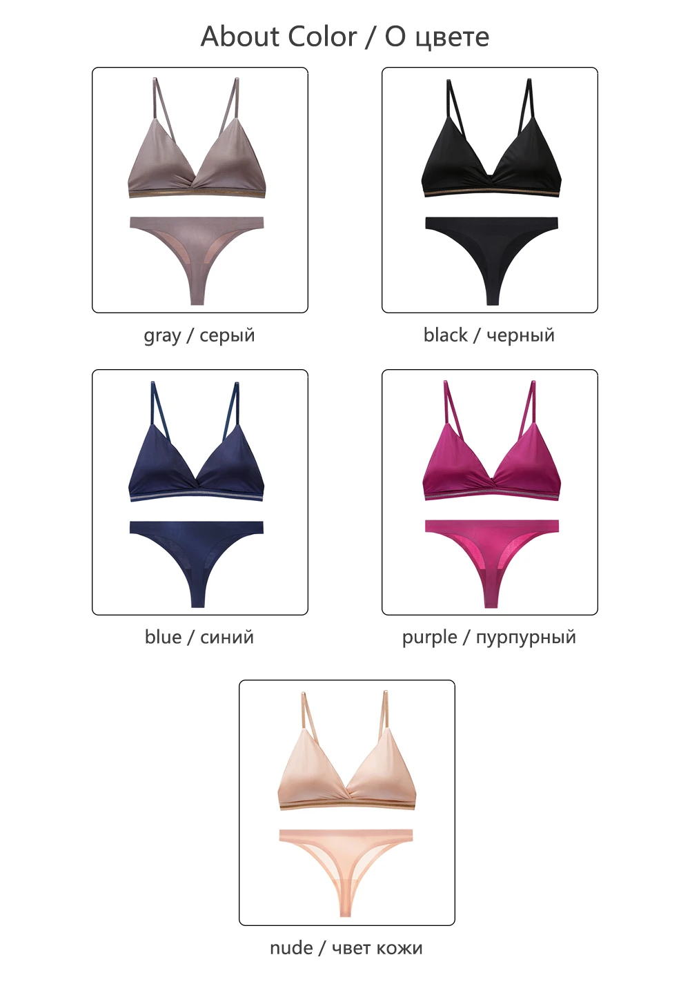 Стринги и бра женские, комплект нижнего белья, бесшовный Бралетт из вискозы, без косточек, дамские трусики-стринги, 1 комплект