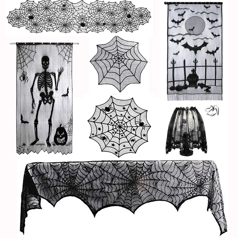 1 шт. кружевная скатерть на Хэллоуин с изображением паутины прямоугольная каминная мантия шарф череп скелет занавеска вечерние украшения для мероприятий
