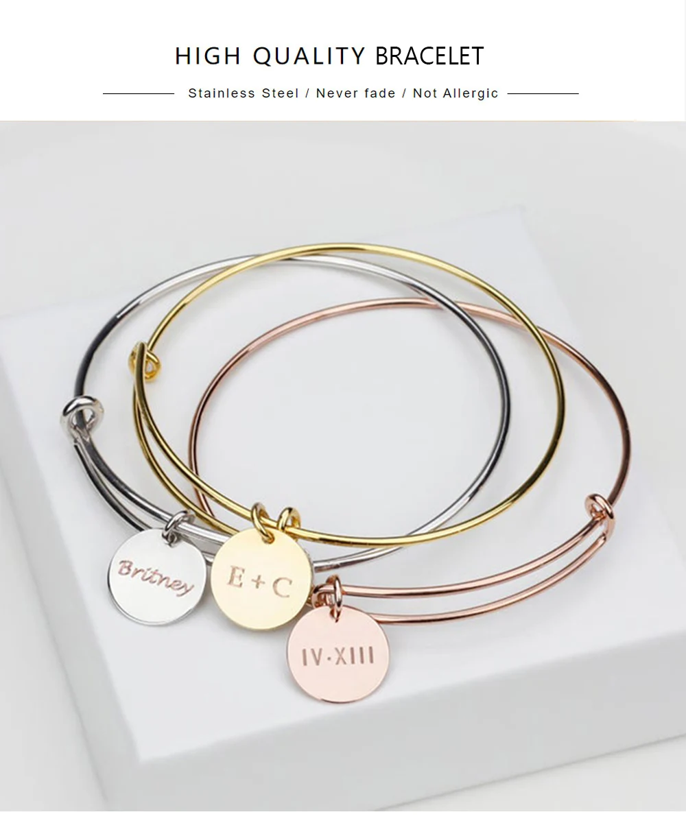 HUHUI изготовленный на заказ для детей возрастом 1-6 имя браслет Круглый Кулон индивидуальная из нержавеющей стали регулируемый браслет для женщин семья ювелирные изделия Подарок на годовщину