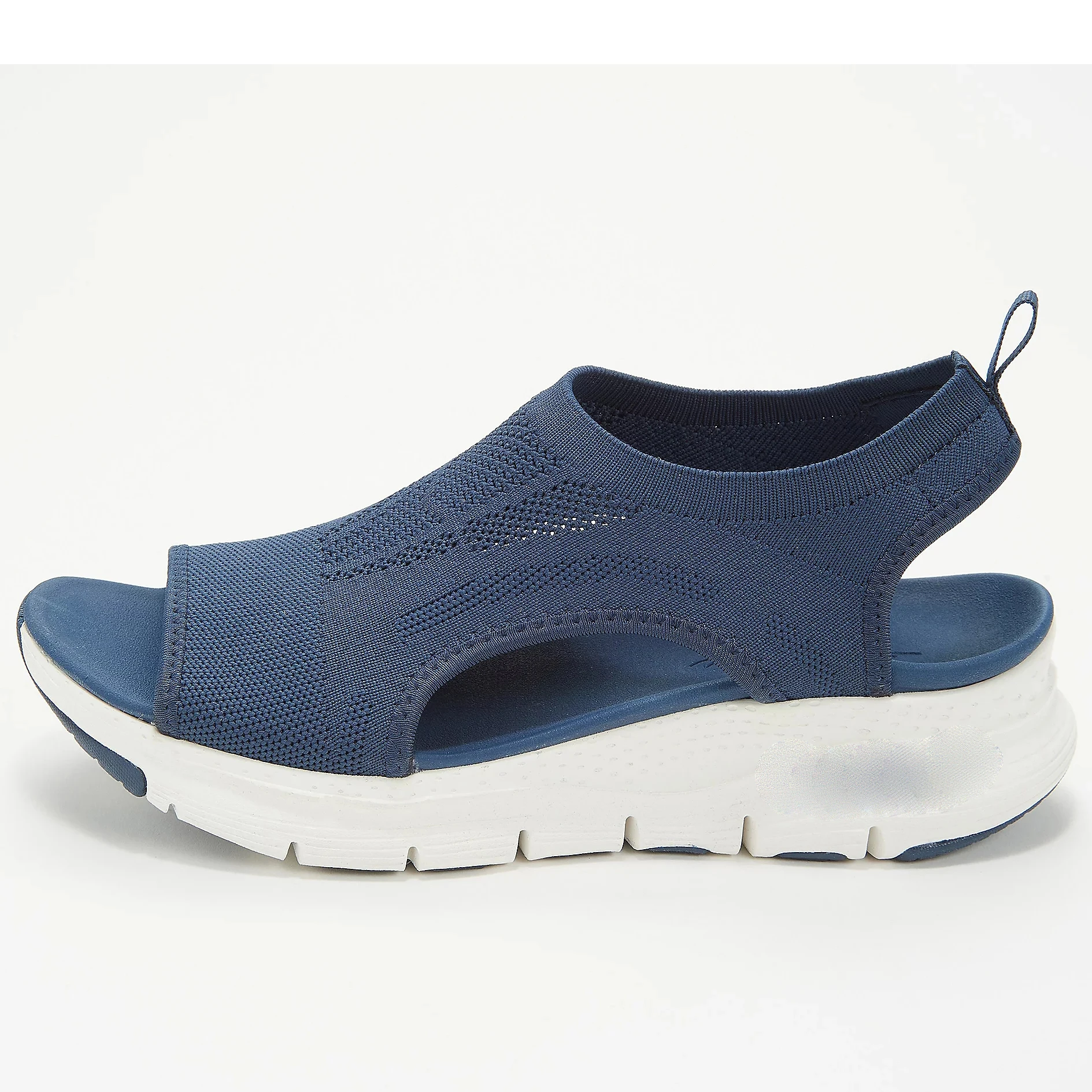 Сандалии женские с открытым носком, босоножки на танкетке без застежки, с вырезами, Повседневная Удобная однотонная Уличная обувь, лето