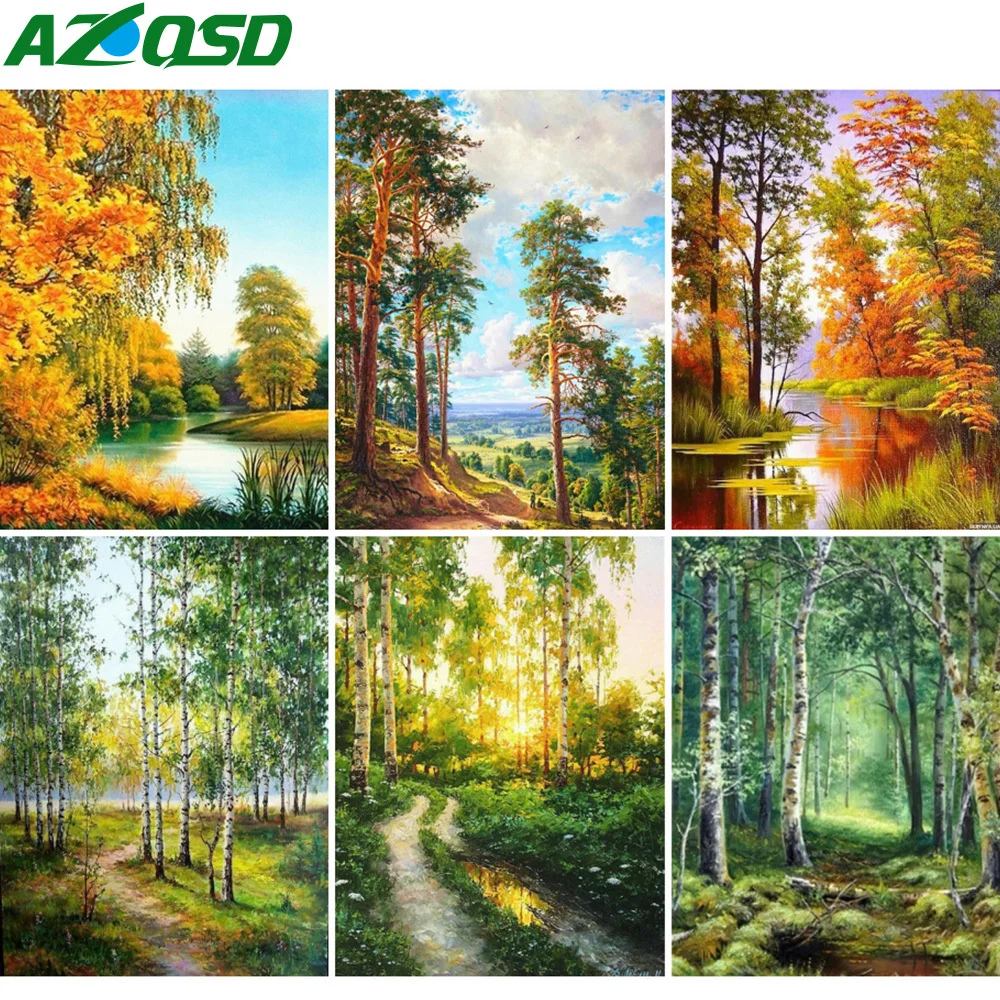 Алмазная картина Название: AZQSD 5d алмазная картина полностью квадратная дрель дерево лес Алмазная вышивка пейзаж мозаика Стразы Декор для дома подарки