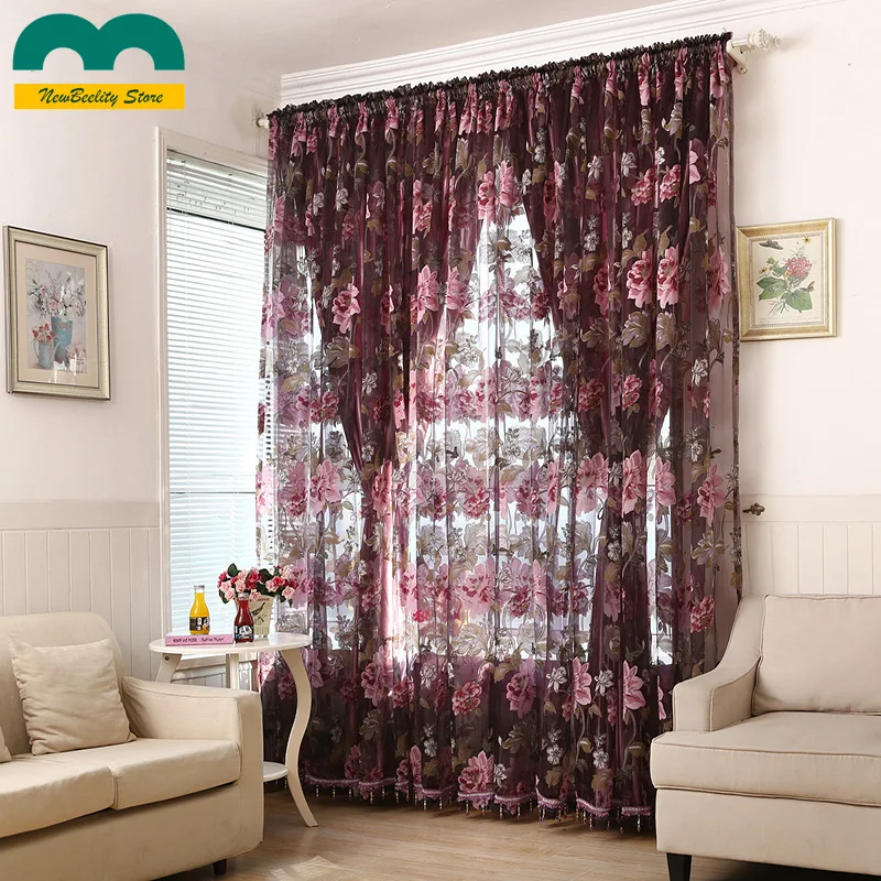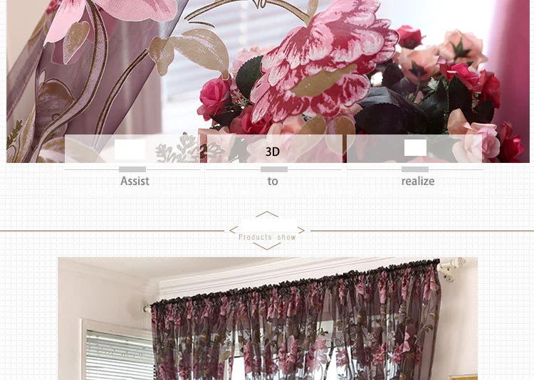 Тюлевые занавески для гостиной, столовой, спальни, пасторальные Пионовые пряжи, фиолетовые Оконные Занавески