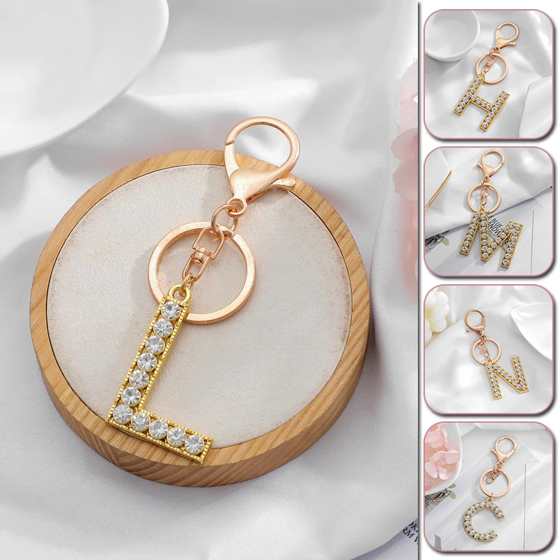 2020 Новый женский брелок с жемчужинами 26 букв подвесной металлический брелок для ключей для женщин от А до Z письмо брелок держатель Шарм аксессуары для сумок