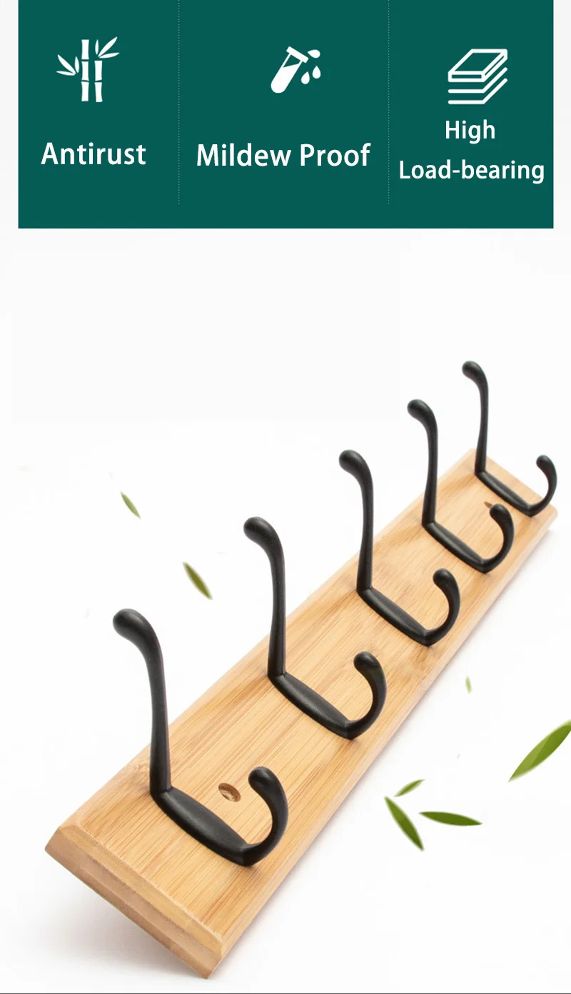 Цвет: бамбук, белый, коричневыйМатериал: бамбуковое дерево + цинковый сплавРазмеры: 4 крючка: 7,5*48,5 см5 Крючки: 7,5*61,2 см