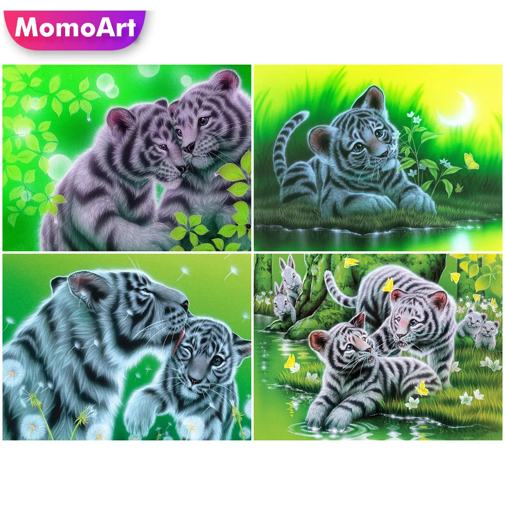 Набор для алмазной вышивки MomoArt с изображением животных, Алмазная мозаика с тигром, квадратная вышивка с цветами, 5D сделай сам
