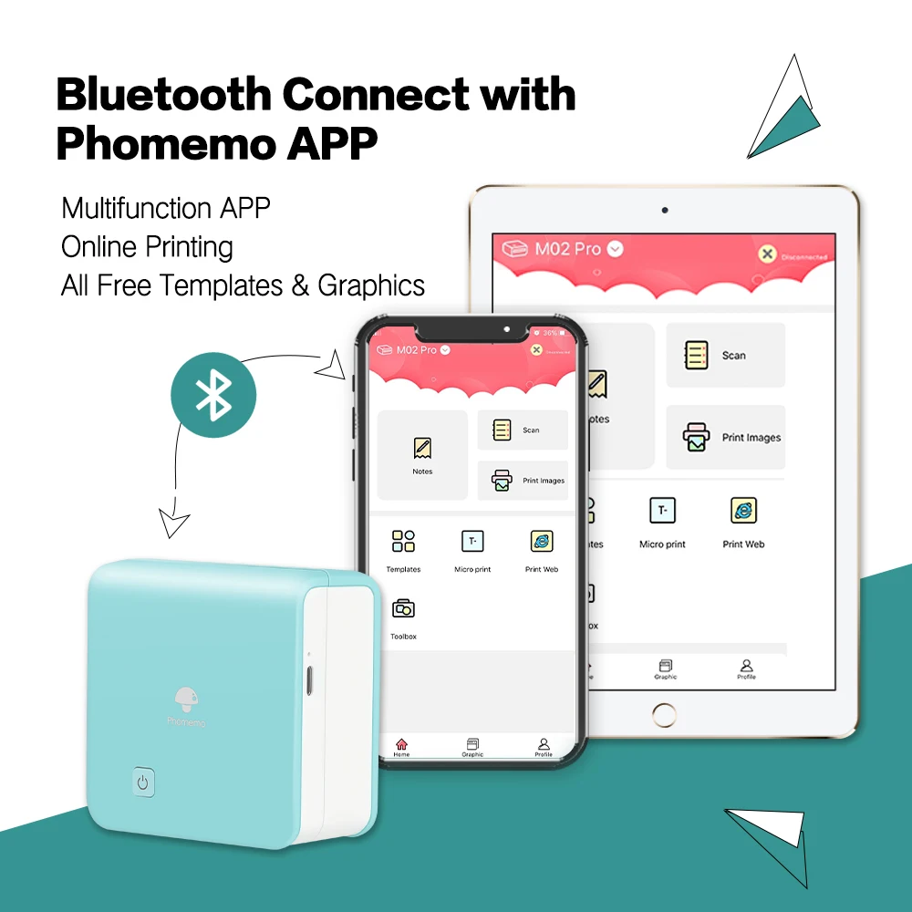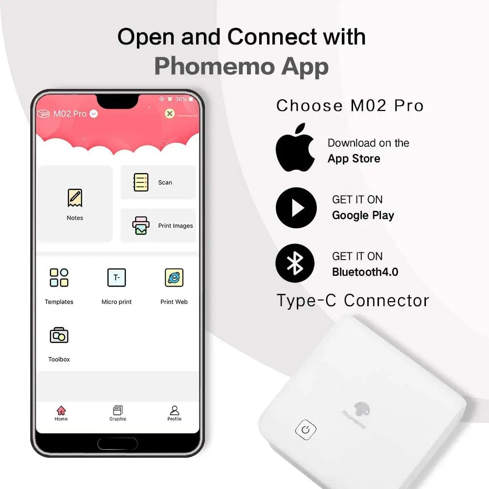 Phomemo M02 Pro Bluetooth Термальность принтер мини Мобильный Bluetooth Беспроводной этикетка портативная наклейка 300 Точек на дюйм рулона бумаги Imprimante