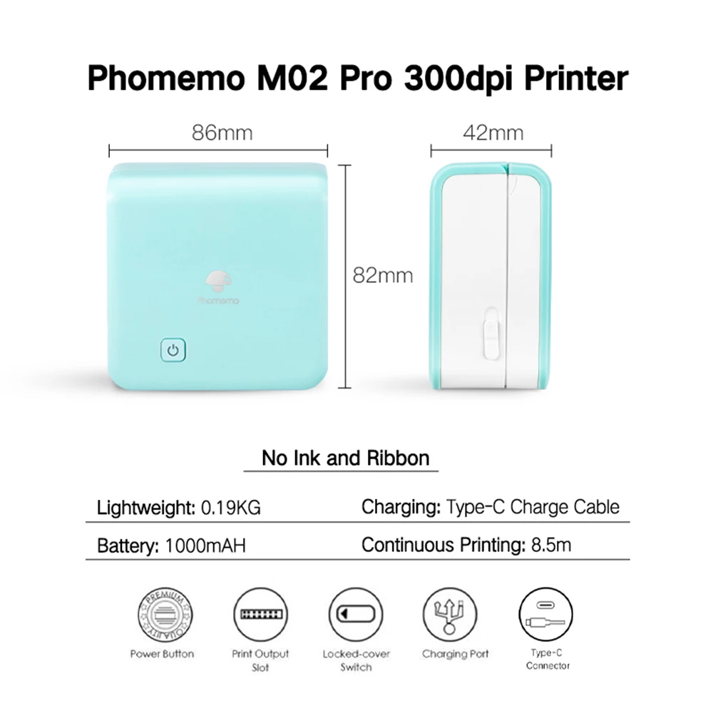 Беспроводной портативный мини-принтер Phomemo M02 Pro, 300 точекдюйм