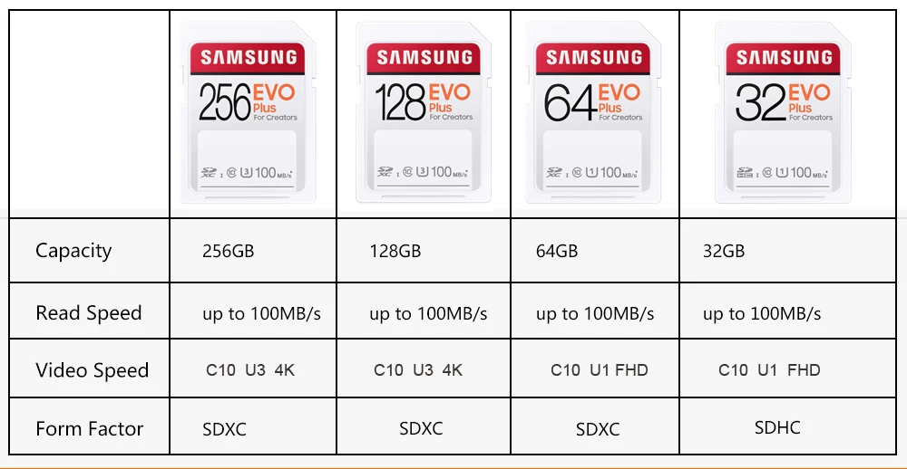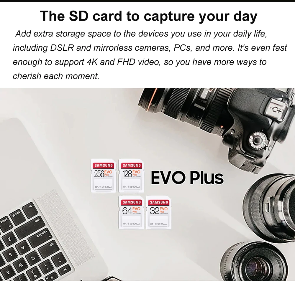 100% оригинальная SAMSUNG SD-карта 32 Гб 64 Гб 128 ГБ 256 ГБ C10 U1U3 высокоскоростная карта памяти для видеокамеры 1080p 3D 4K