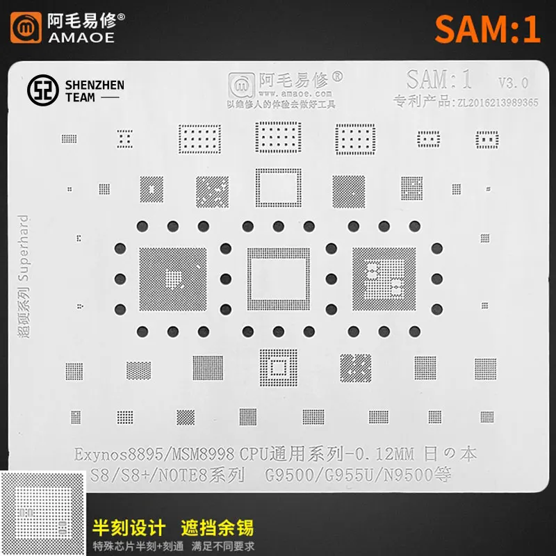 Трафарет AMAOE SAM:1 для SAMSUNG S8 S8 + Note8 G9500 G955U N9500 Exynos8895 MSM8998 трафарет для реболлинга ЦПУ Оловянная посадочная сетка сварка