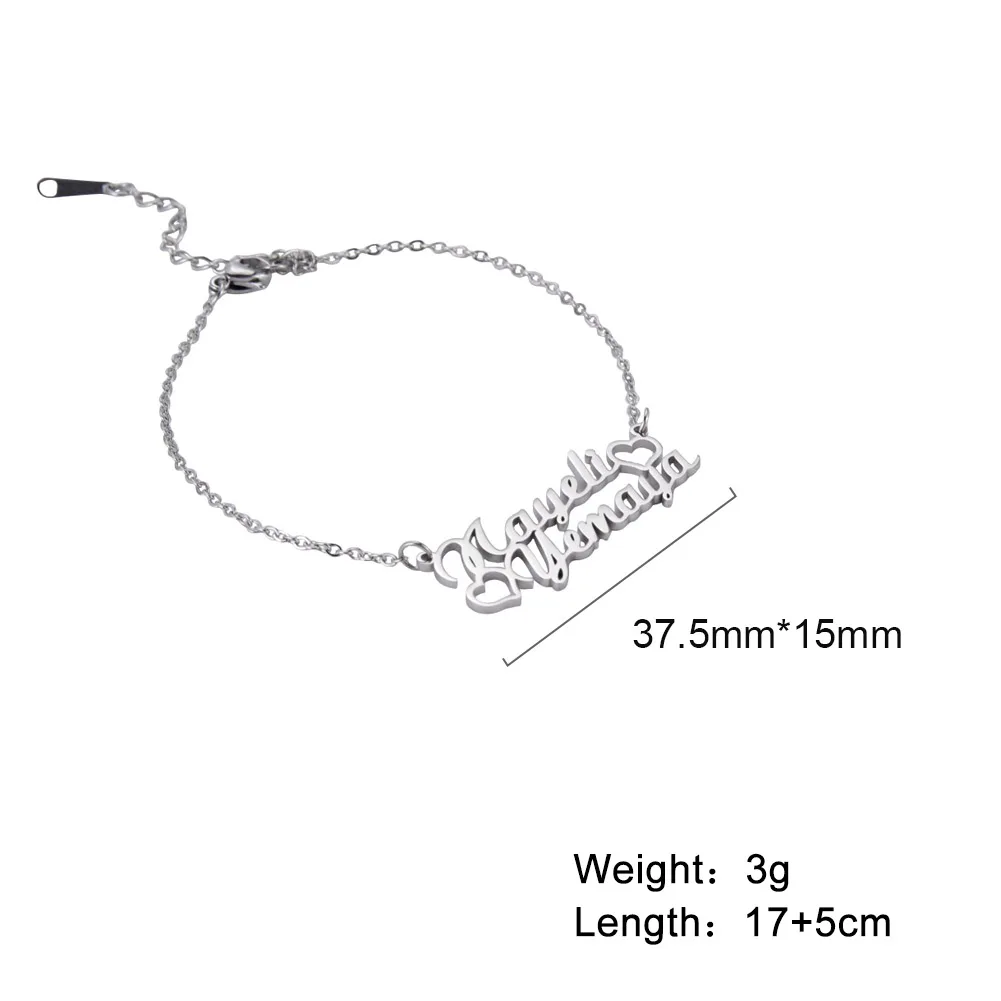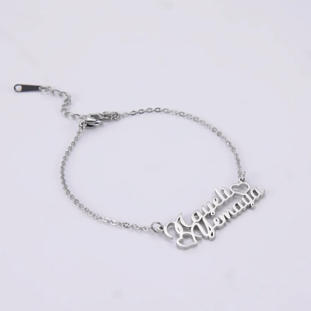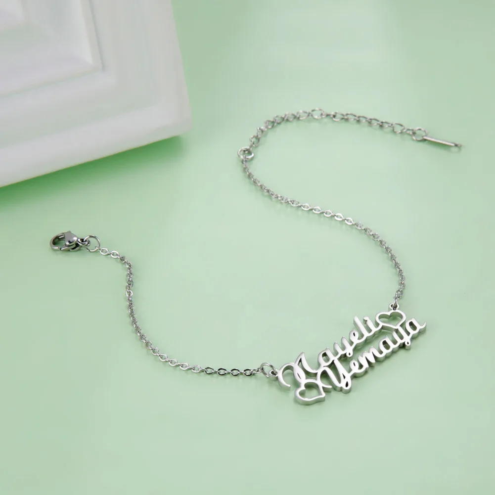 Именной браслет с сердцем, браслет из нержавеющей стали с именной т...
