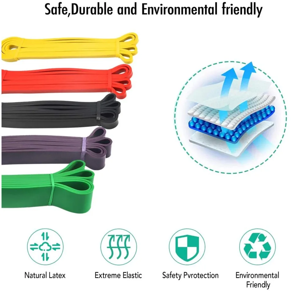2. Различные цвета и 5 уровней натяжных лент: набор из 5 шт., поддерживающих резинок, соответствуют разному цвету s, желтому (5-10 фунтов), красному (15-30 фунтов), черный (30-60 фунтов), фиолетовый (60-100 фунтов), зеленый (70-120 фунтов), 89 дюймов в длину и может использоваться отдельно или комбинировать несколько ленты для тренировок, чтобы увеличить вызов.