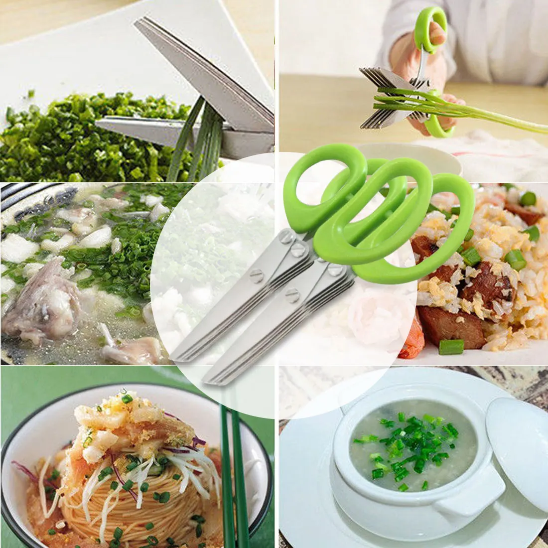 Многофункциональные Многослойные ножи из нержавеющей стали, многослойные кухонные ножницы, скальльон, резак, трава, листья, специи, инструмент для готовки, резка