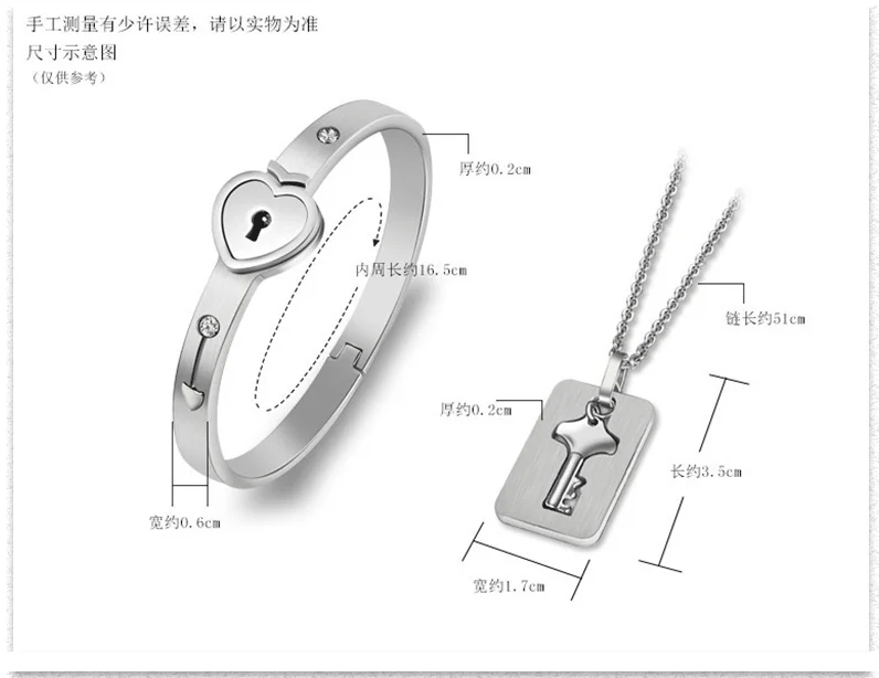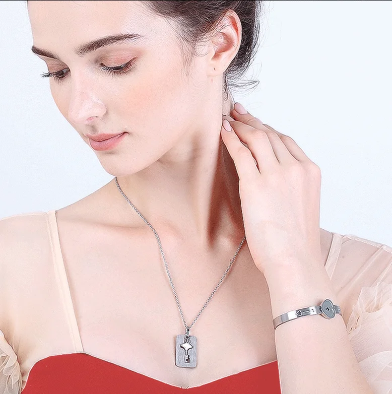 1. Этот ювелирный набор имеет ожерелье в форме ключа и браслет в форме замка. Это очень романтичный комплект для пар.