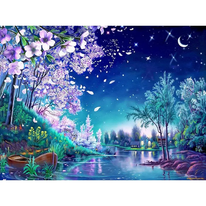 GATYZTORY Рамка DIY Раскраска по номерам Сакура Ночной пейзаж Раскраска по номерам настенная Картина на холсте Рисование для дома подарок