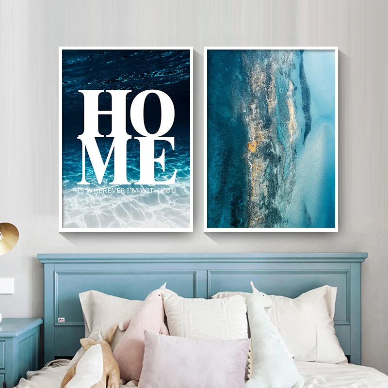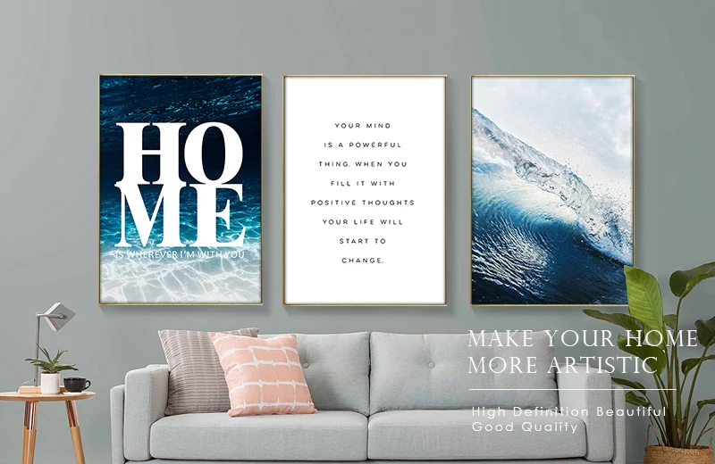Постеры и принты в скандинавском стиле с изображением синих морских волн и облаков для дайвинга, настенная живопись на холсте, настенные картины для декора гостиной