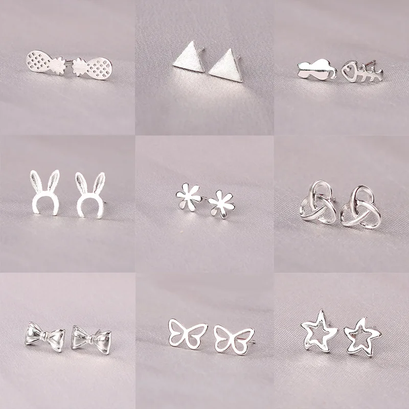Серьги-гвоздики S925silver для женщин и девушек, модные минималистичные серьги в виде черепа, призрака, музыки, ювелирные изделия