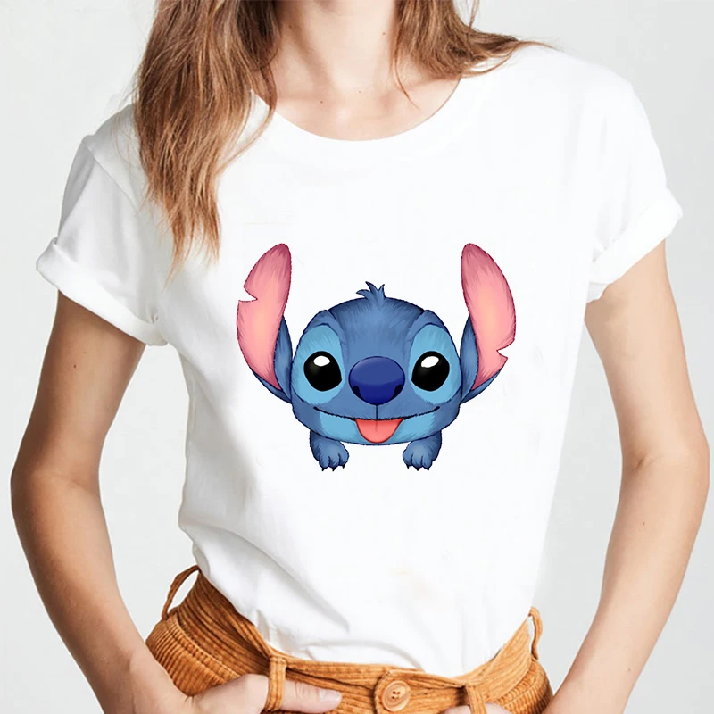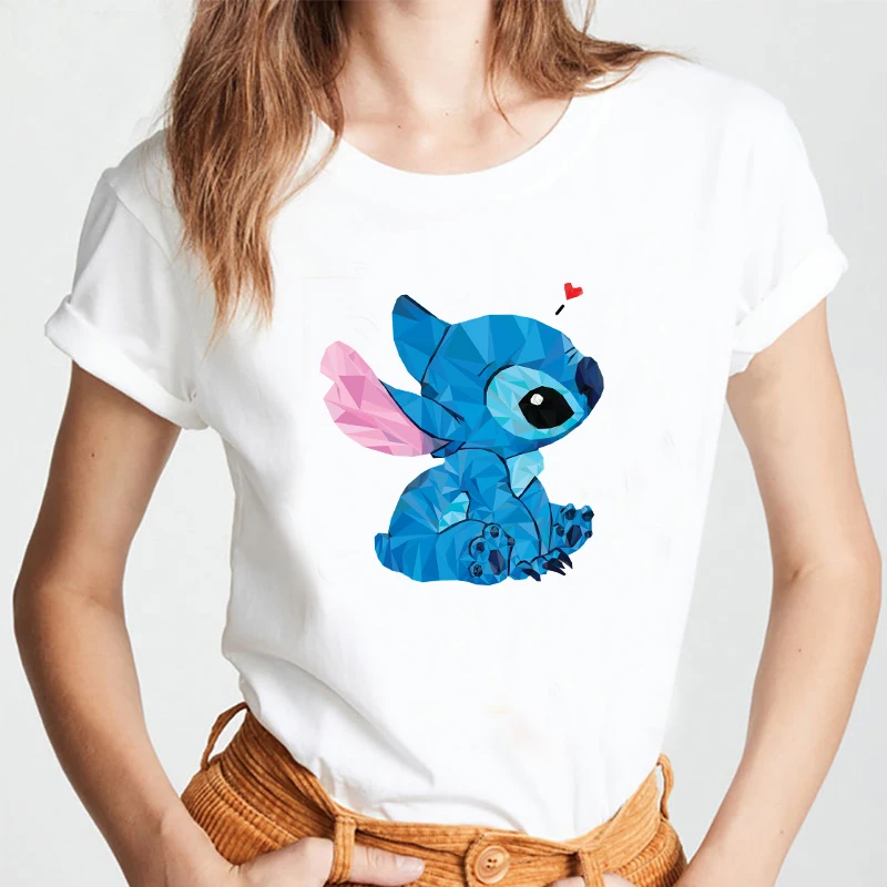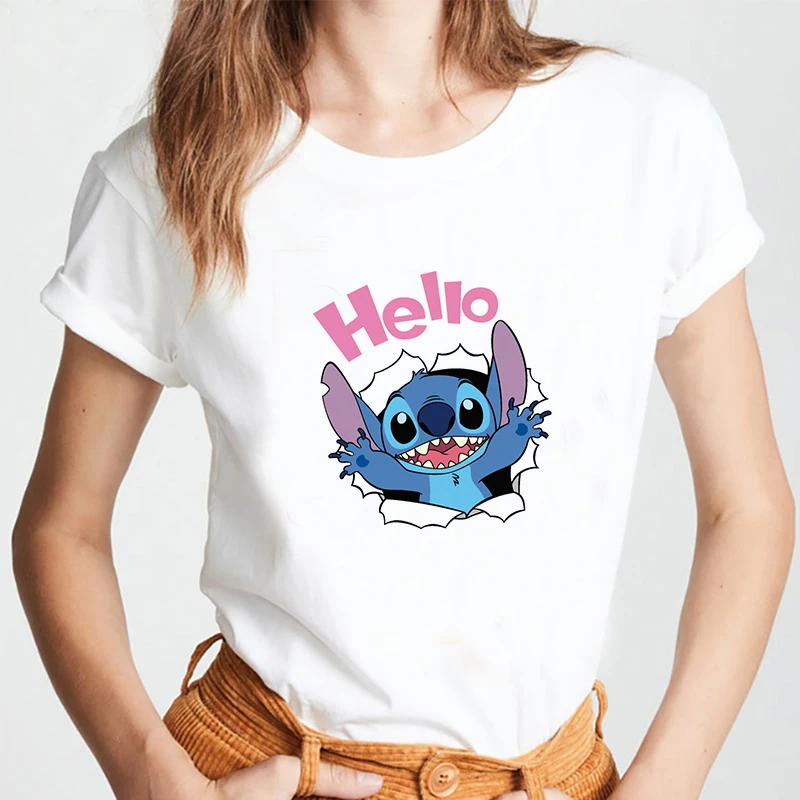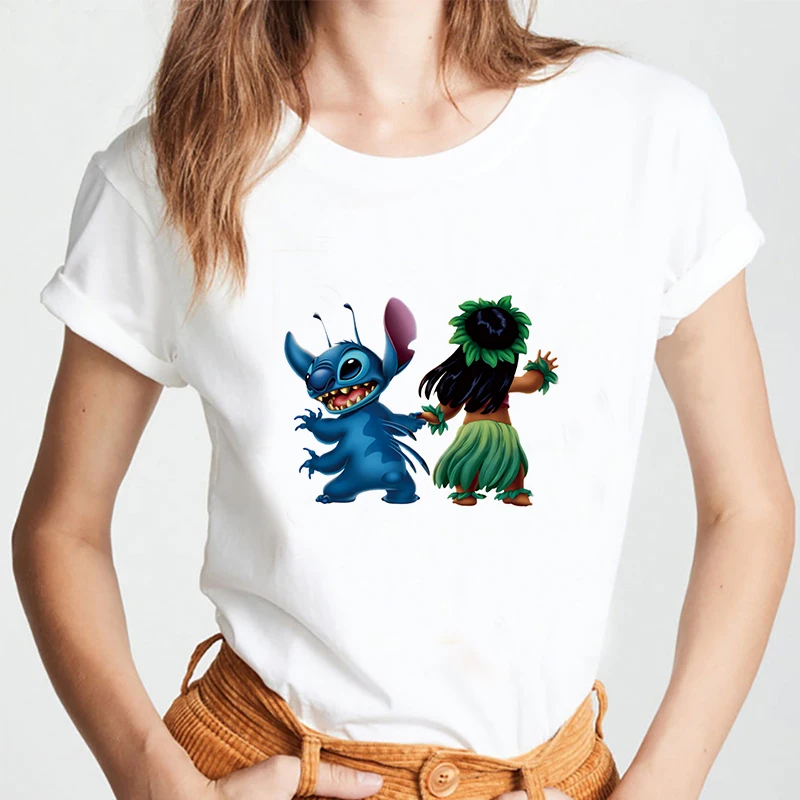 Женская футболка с коротким рукавом Disney Lilo Stitch, белая футболка с круглым вырезом и рисунком в стиле Харадзюку, хип-хоп, для лета