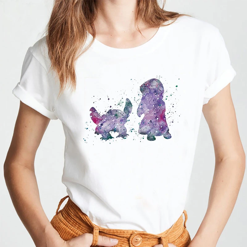Футболка женская летняя с круглым вырезом и рисунком Диснея Лило Стич