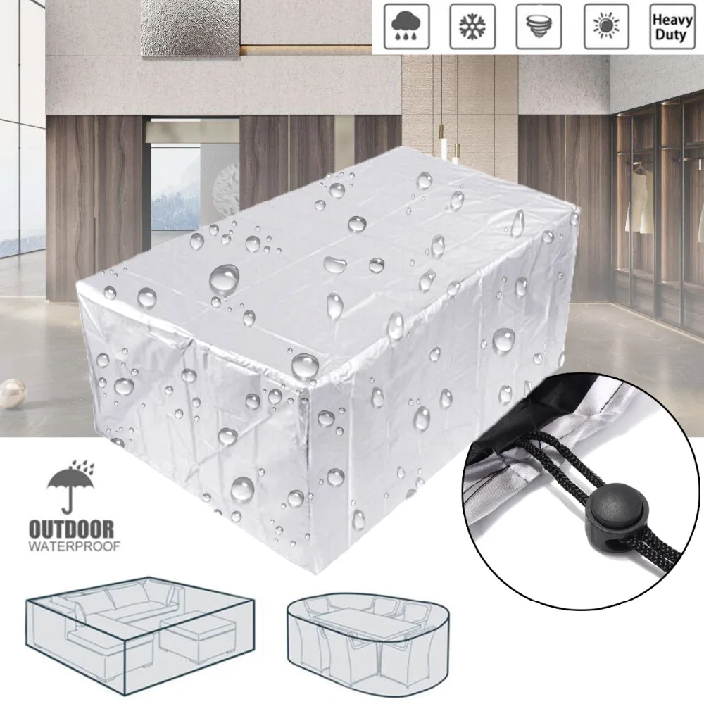 Тип: набор мебели форма чехла: прямоугольник Цвет: серебристый снаружи черный внутренний материал: водонепроницаемая ткань Оксфорд 210DРазмер: необязательно242x162x100 см/95.27x63.77x39.37inch308x138x89 см/121.25x54.33x35.03inch213x132x74 см/x дюйма180x120x74 см/70.86x47.24x29.13inch126x126x74 см/x дюйма123x61x72 см/48,42x24,01x28,34 дюйма115x115x70 см/45,27x45,27x27,55 дюйма270x180x89 см/106,2x70,86x35 дюймов........