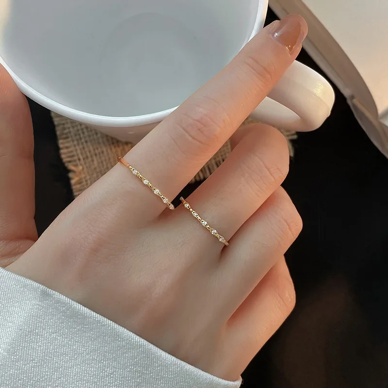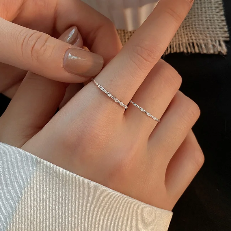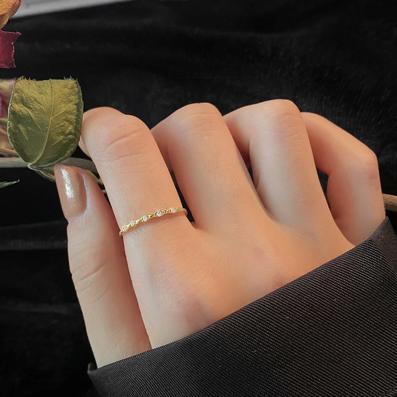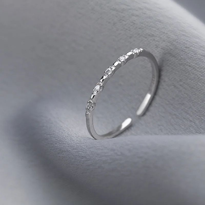 Простой Стиль алмаз Открытое кольцо Серебряный Золотой Цвет для женщин ювелирные изделия регулируемый WYk-330