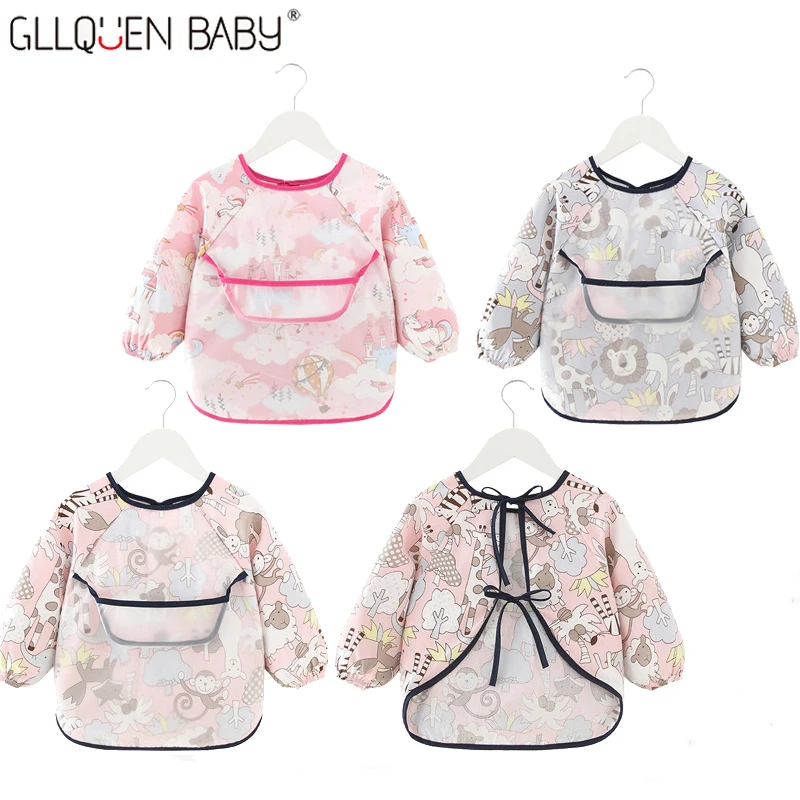 1 шт. нагрудники в виде банданы для новорожденного с длинным рукавом Водонепроницаемый мультфильм милые детские вещи От 0 до 4 лет собственной личности для кормления, для еды инструменты с карманом детские нагрудники