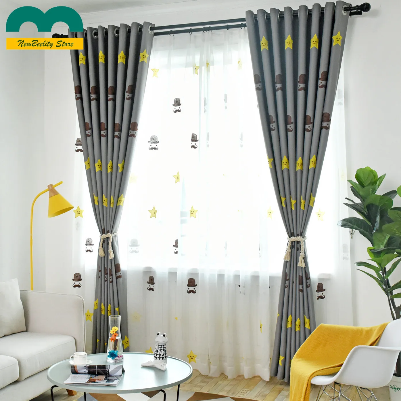 Затенение для детской комнаты Современная Скандинавская мультяшная вышитая занавеска для спальни плавающая средиземноморская занавеска