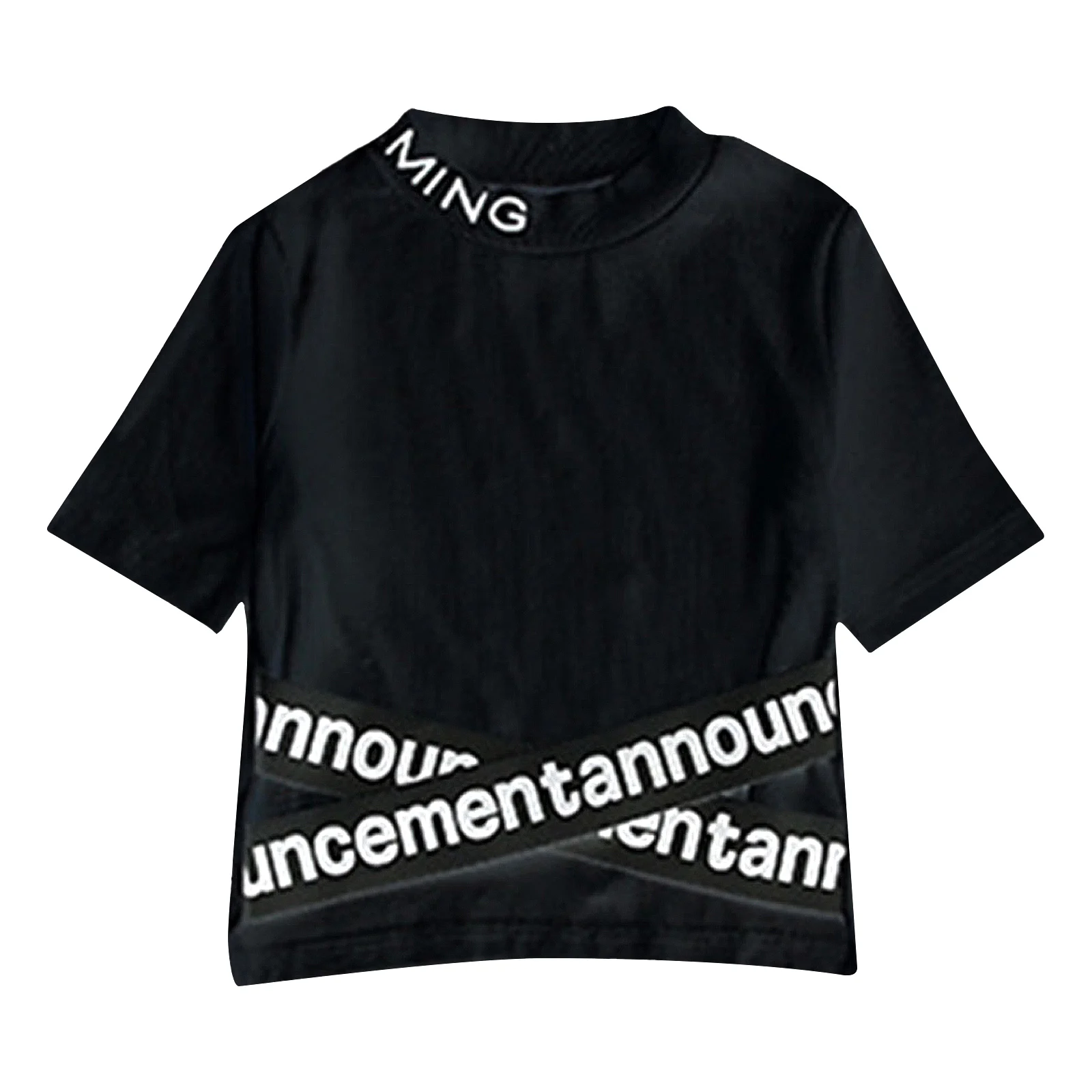 Одежда для маленьких девочек, летняя одежда, облегающие короткие футболки с буквенным принтом, модные короткие топы, От 5 до 13 лет Детские комплекты