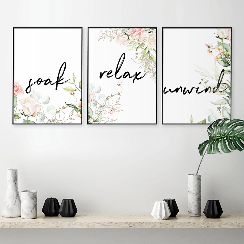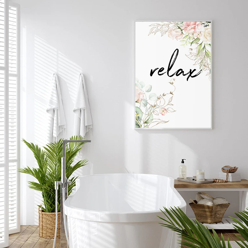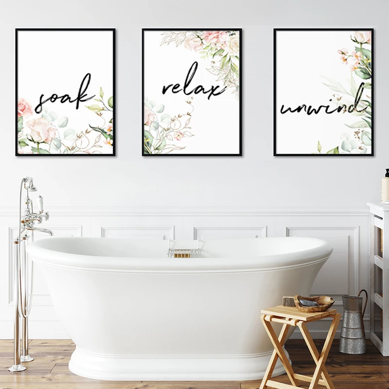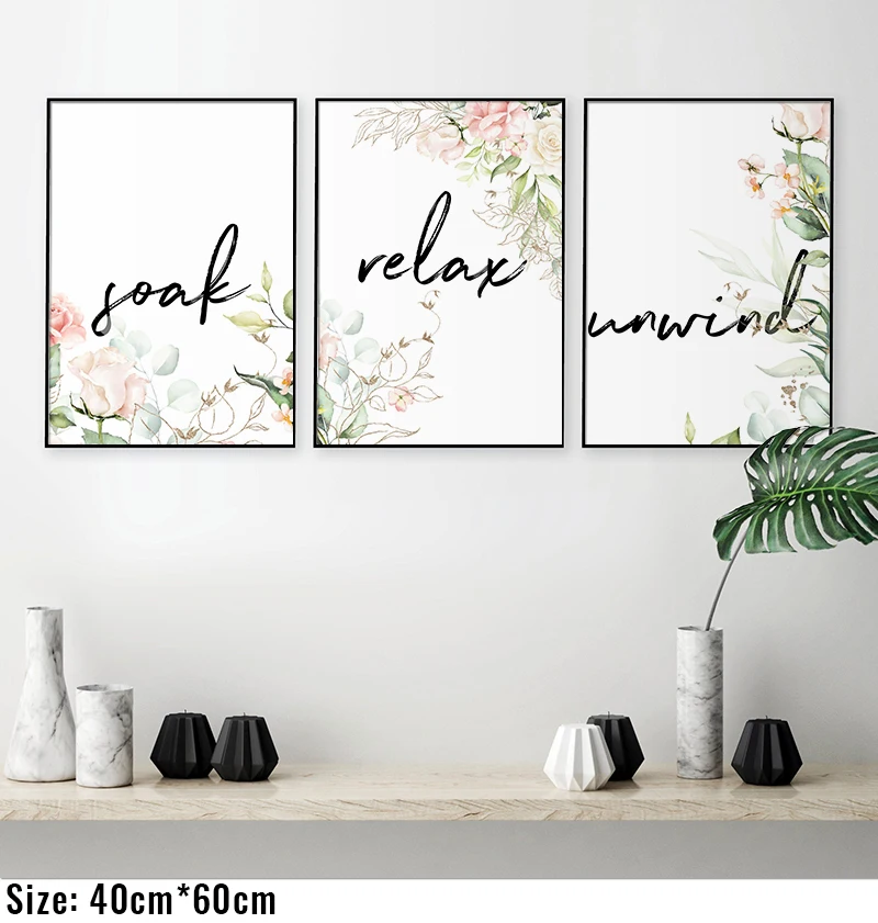 Современная простая цитата в ванную комнату с цветами, холст с рисунком, расслабляющий отмачиваемый постер с буквами, Настенная картина, скандинавский Декор для дома