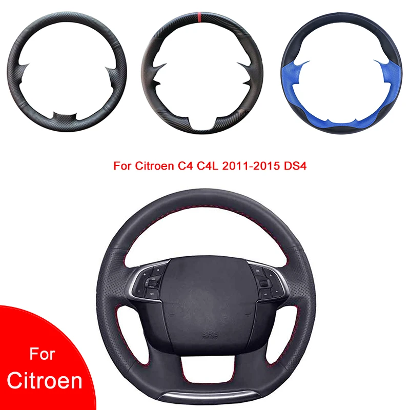 Дышащая прошитая вручную черная искусственная кожа Чехол рулевого колеса автомобиля для Citroen C4 C4L 2011-2015 DS4