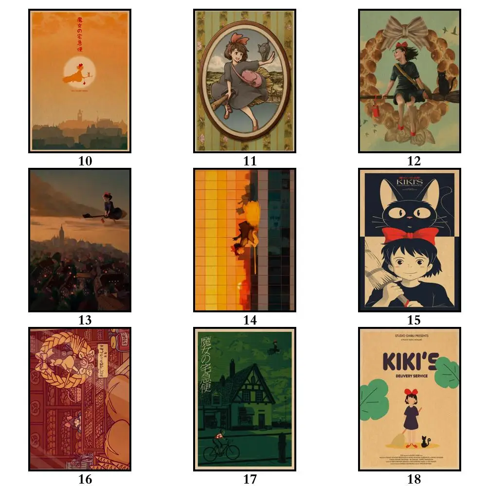 Ретро-постер WTQ ghiали, служба доставки Кики из фильма, Картина на холсте, аниме постеры, Настенный декор, настенное искусство, картина, домашний декор