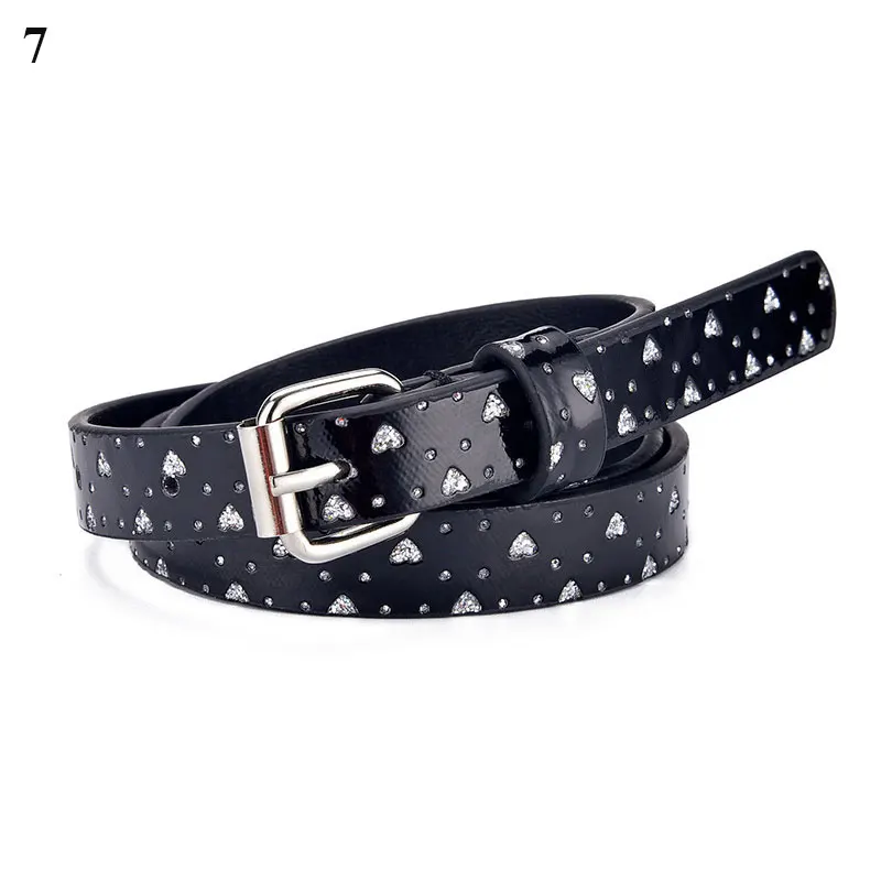Детский Блестящий Пояс в форме сердца из искусственной кожи, полихроматический короткий пояс для джинсов, украшение для пояса