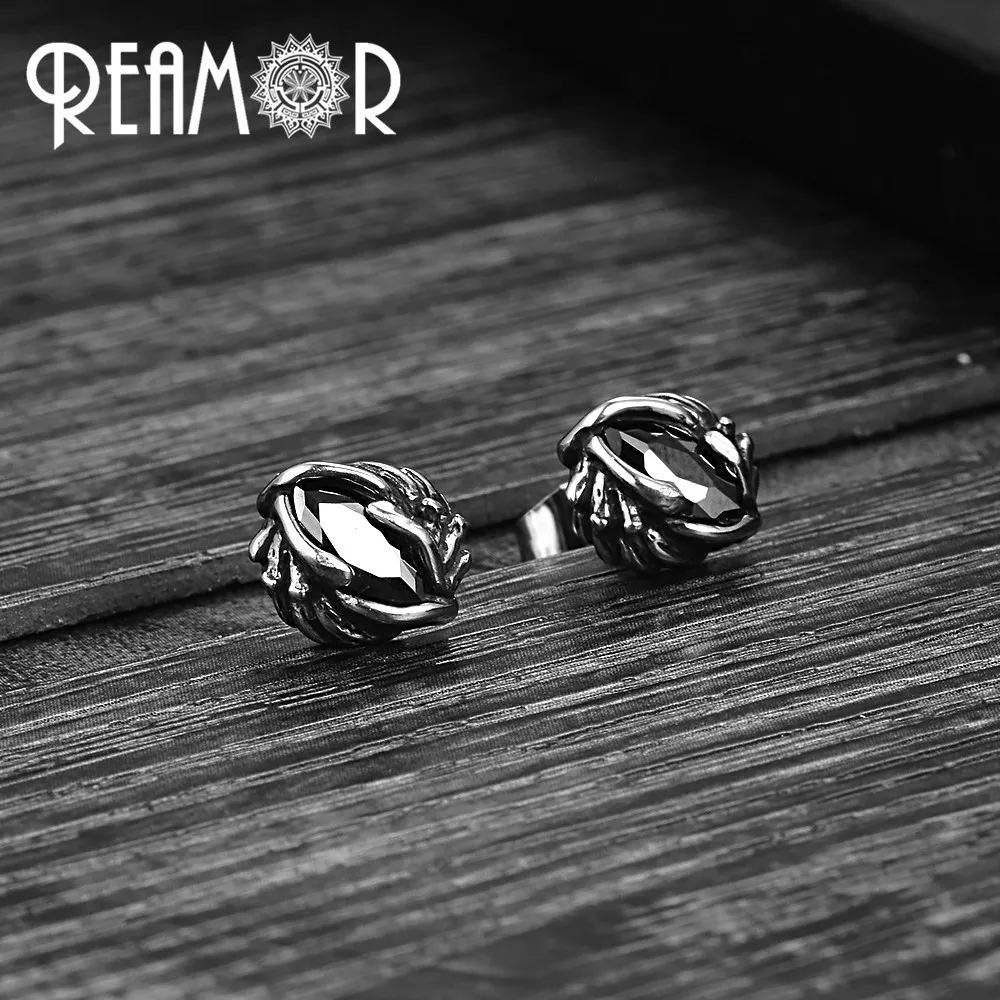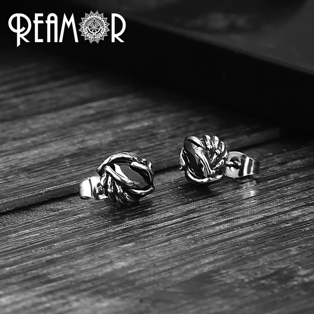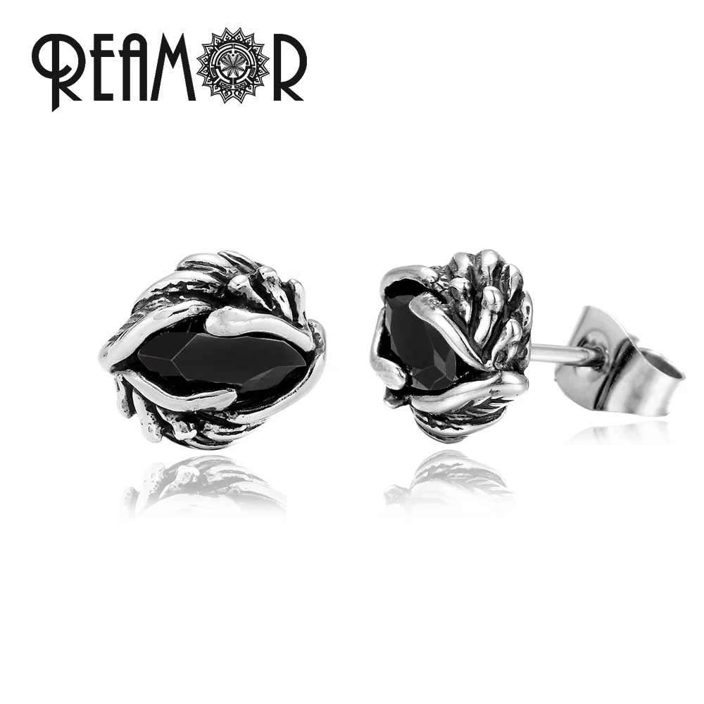 Женские серьги-гвоздики REAMOR, с черным сердцем и перьями из нержавеющей стали, с фианитами, ювелирные изделия, 2021