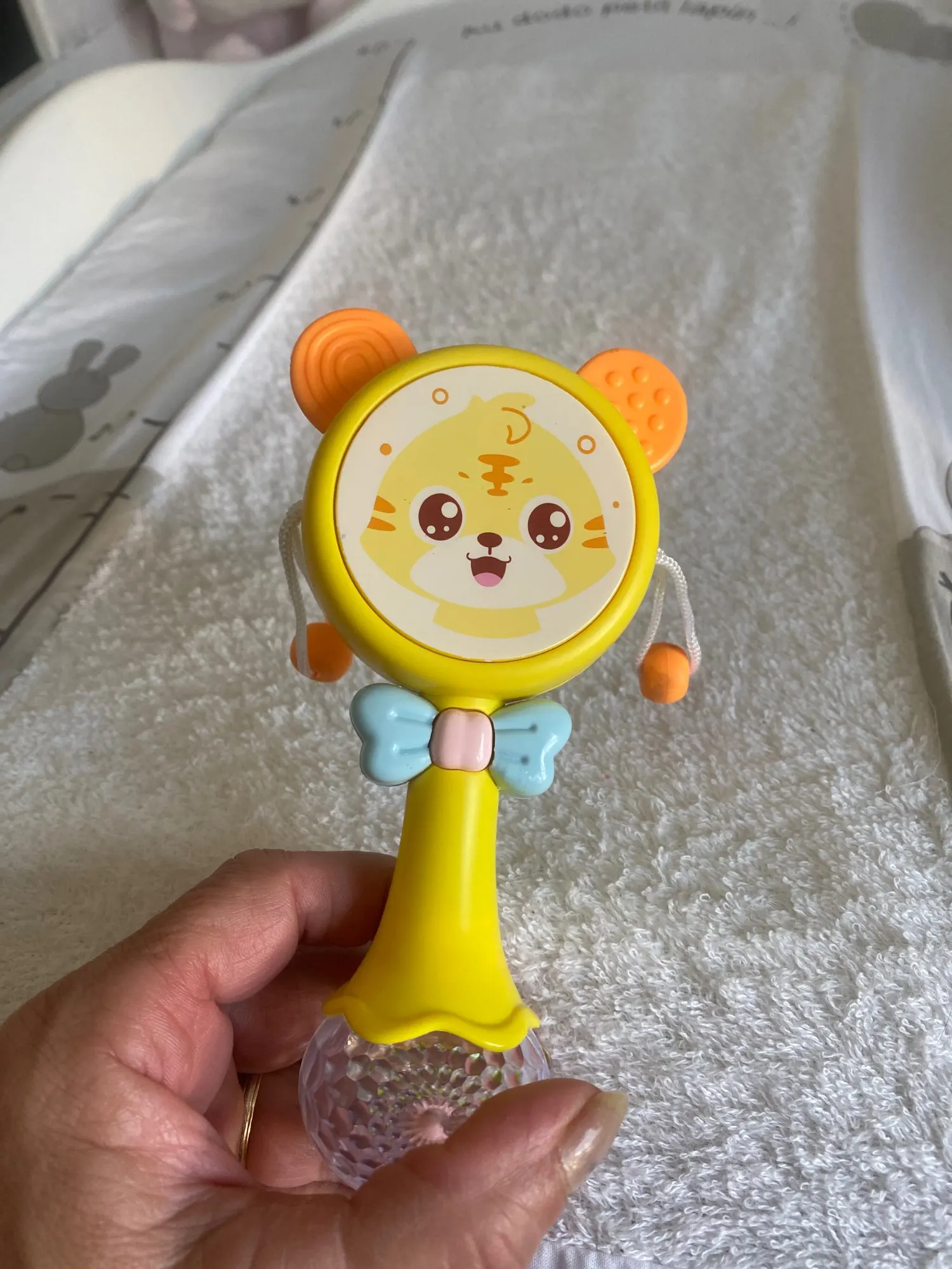 хорошая погремушка, есть кнопка вкл выкл музыки, что очень удобно, качество хорошее