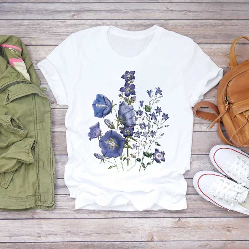 Женские туфли с цветочным принтом Модные женские короткий рукав Эстетическая одежда летние футболки для девочек осенний ТопГрафический женские, дамские туфли-лодочки, футболки