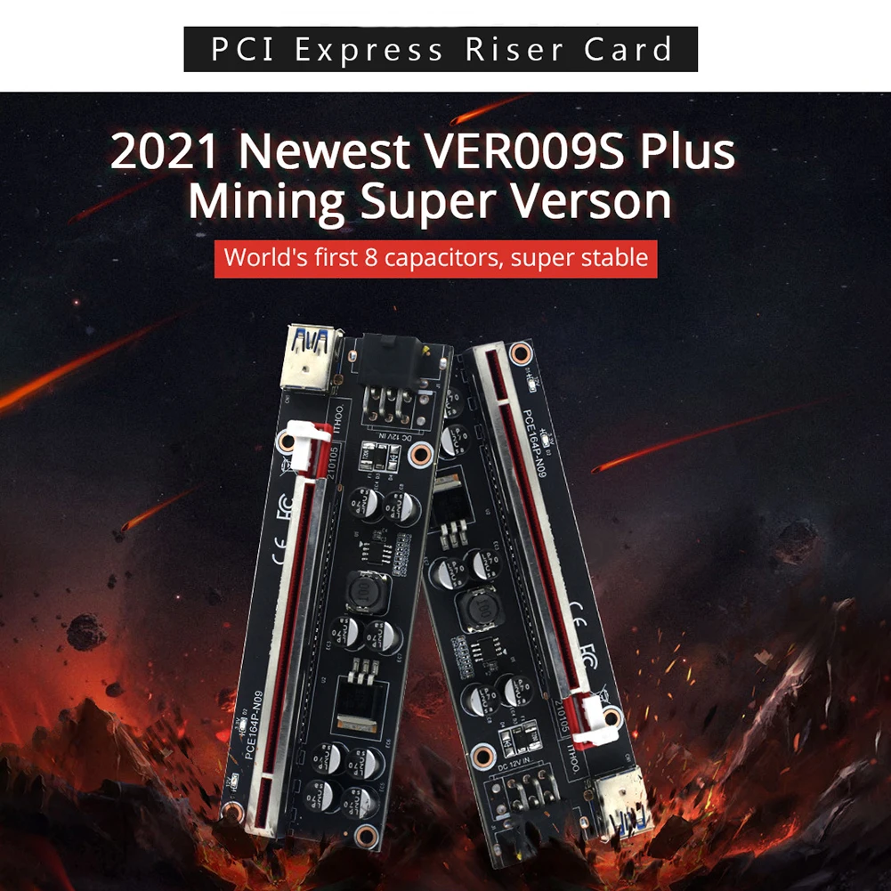 6 шт., Райзер VER009 Plus USB 3,0 PCI-E, Райзер VER 009S Express 1x 4x 8x 16x, Райзер-карта PCIe, адаптер SATA, 15 контактов на 6 контактов питания