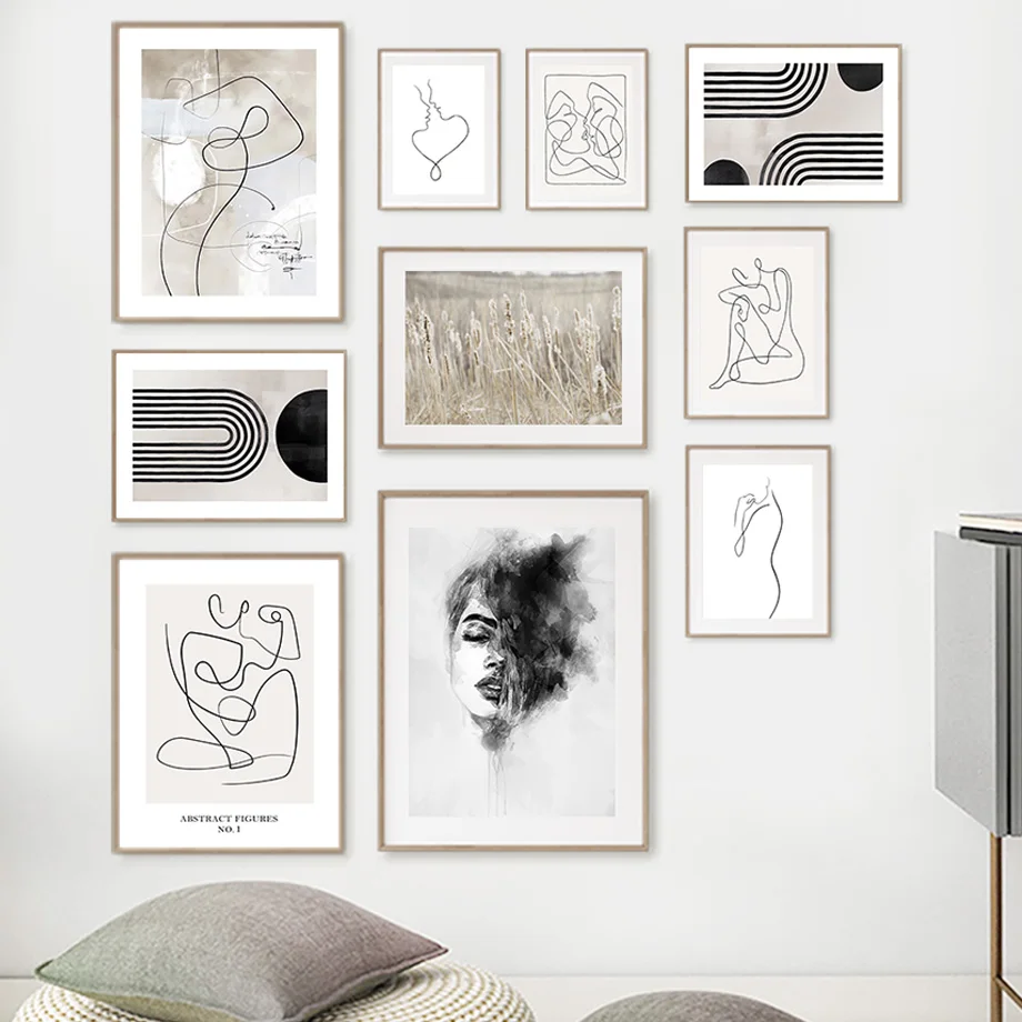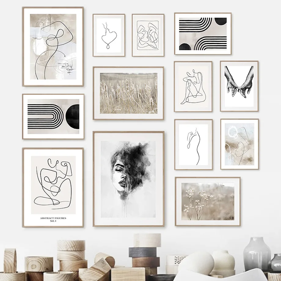 Скандинавские абстрактные геометрические фигурки, постер, линия тела, скетч, тростники, настенное искусство, холст, живопись, простой Декор для дома, картины