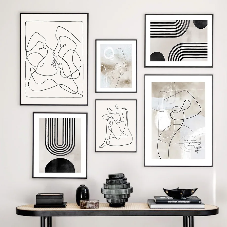 Скандинавская простота, рисование линий, плакат и печать, черный, б...