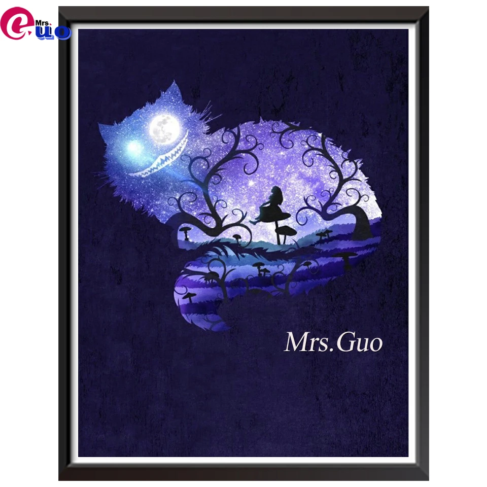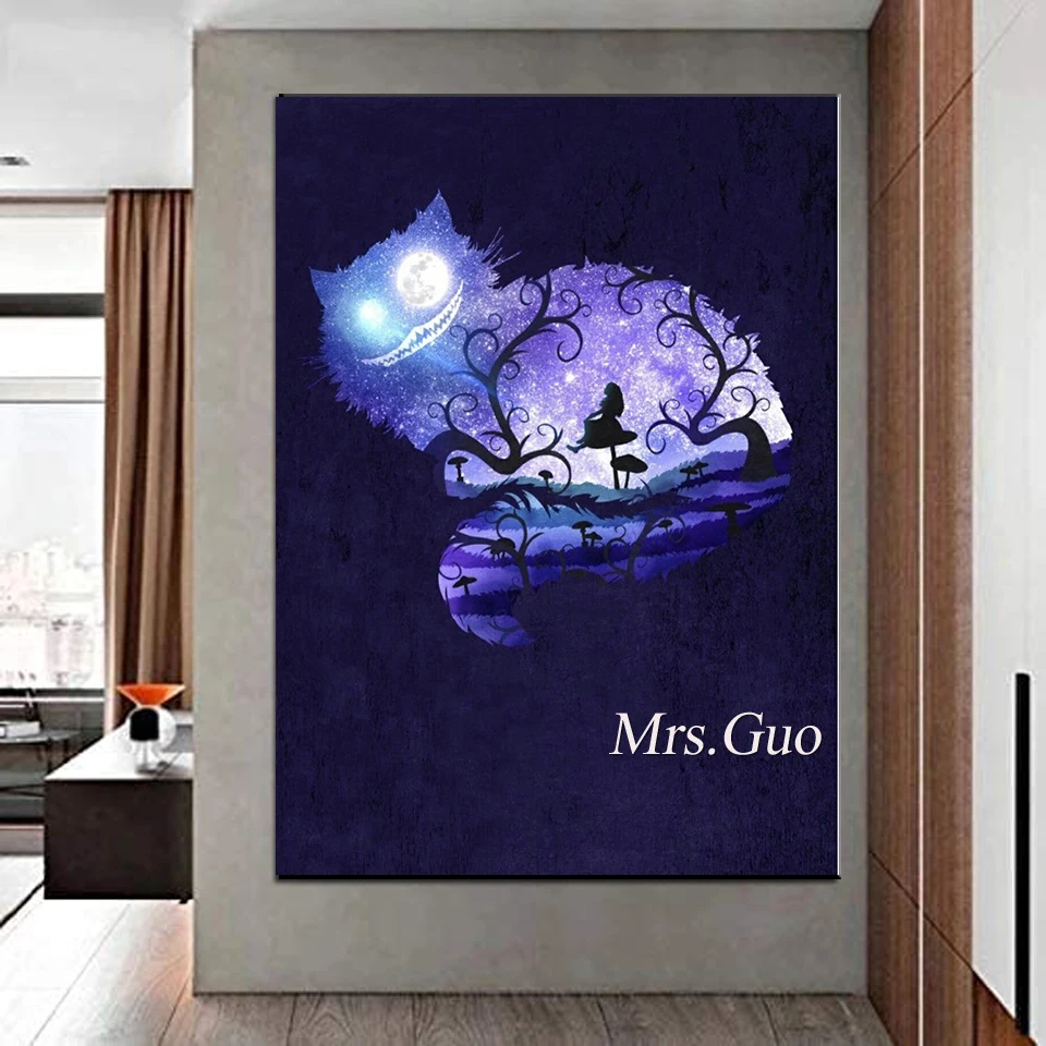 Алмазная картина 5D "сделай сам", квадратная вышивка стразами, изображение страны чудес, милая мультяшная кошка, девушка вышивка крестом, мозаичный Декор