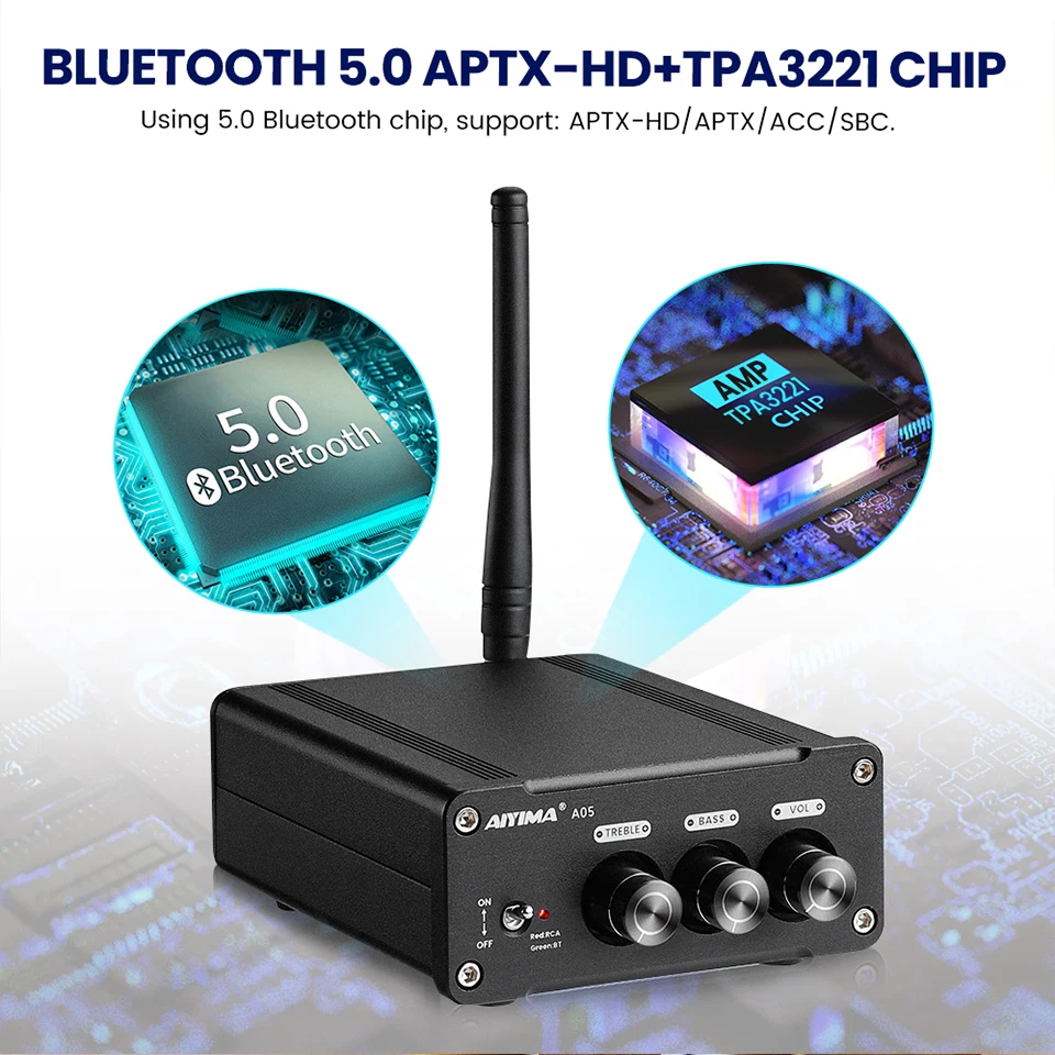 Усилитель AIYIMA TPA3221 Bluetooth 5,0, стерео цифровой усилитель мощности QCC3034, звуковой усилитель, динамик, домашний кинотеатр