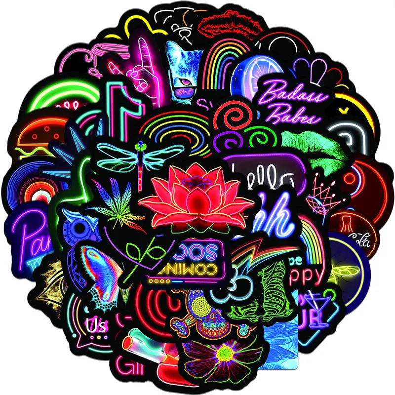 10 Вт, 30 Вт, 50 шт.упак. светящиеся неоновые модные Gratffiti наклейки для шлем Подарочная коробка велосипедный компьютер ноутбук Автомобильная наклейка детская игрушка