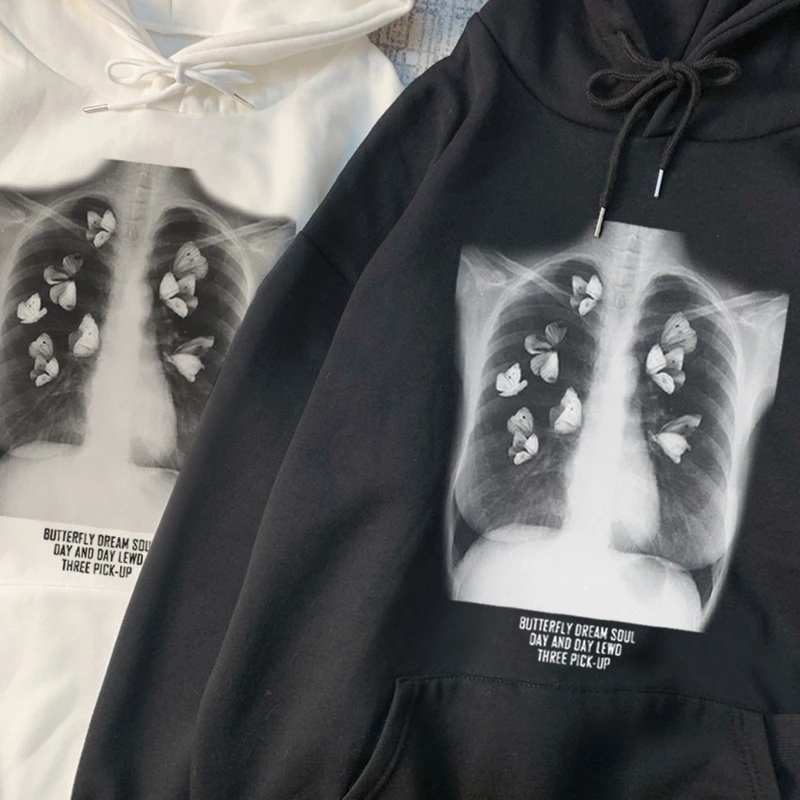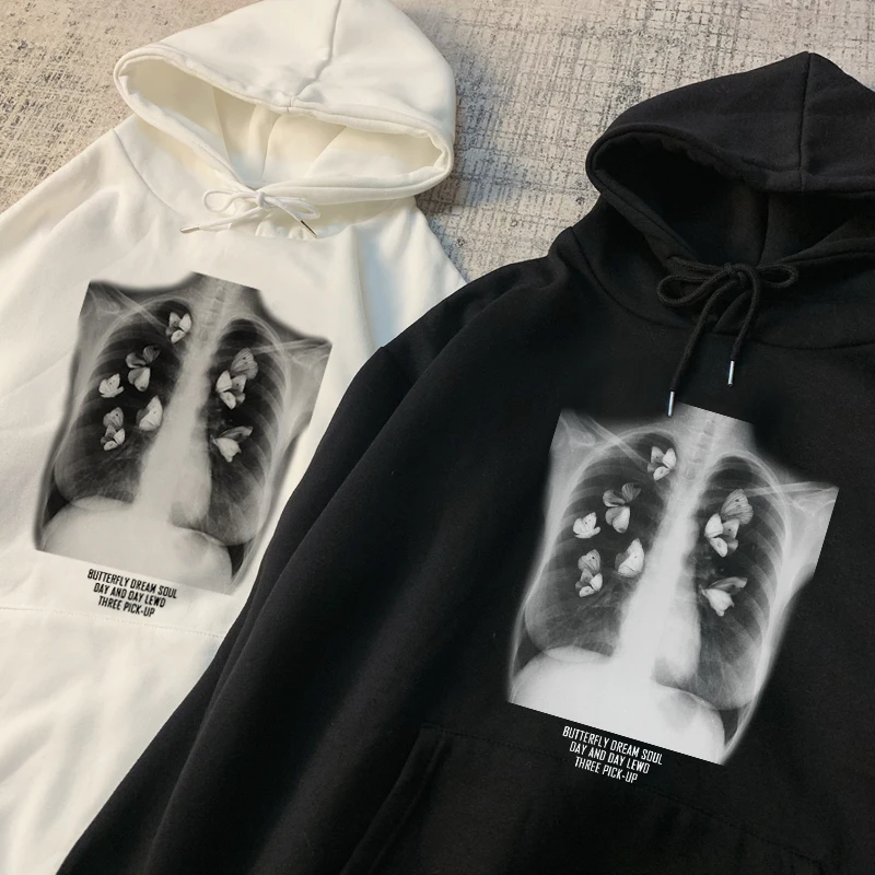 Художественный винтажный пуловер в стиле хип-хоп с изображением бабочки грудины, Свитшот в стиле панк, Женская Повседневная Толстовка