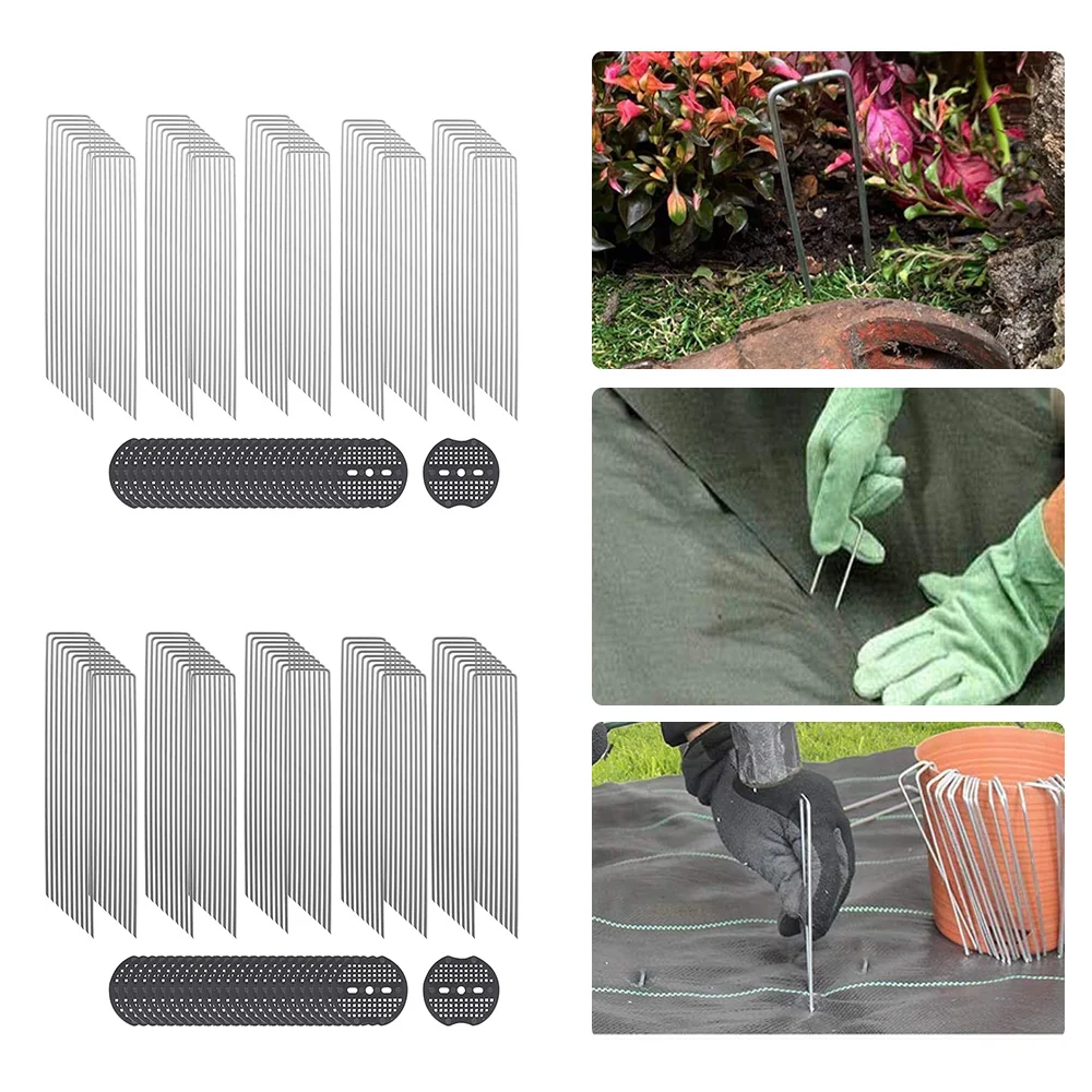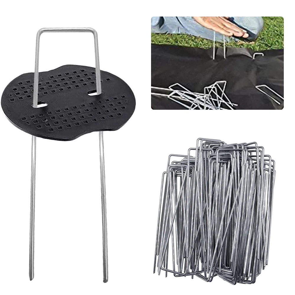 U-тип садовый газон скобы 100 шт u-типизированный дизайн сад пейзаж sod скобы не согнуты ПРИ ВДАВЛИВАНИИ в газон/твердую почву, трапециевидный дизайн садовые скобы помогает добавить дополнительное натяжение в почву, быстрый и безопасный способ крепления в землю.