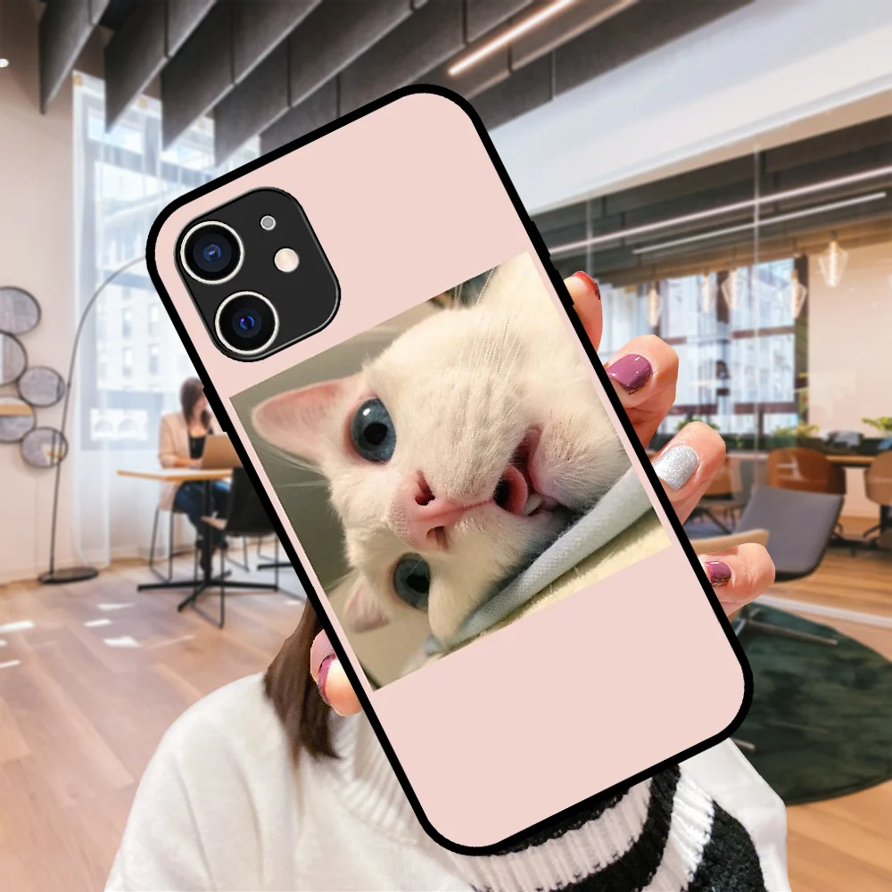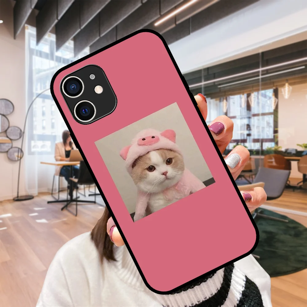 Чехол для телефона Apple IPhone 12 Mini, 11 Pro, XR, X, MAX, SE, XS 4, 5, 6, 6S, 7, 8, E Plus, черный, объемный, розовый с милым котом