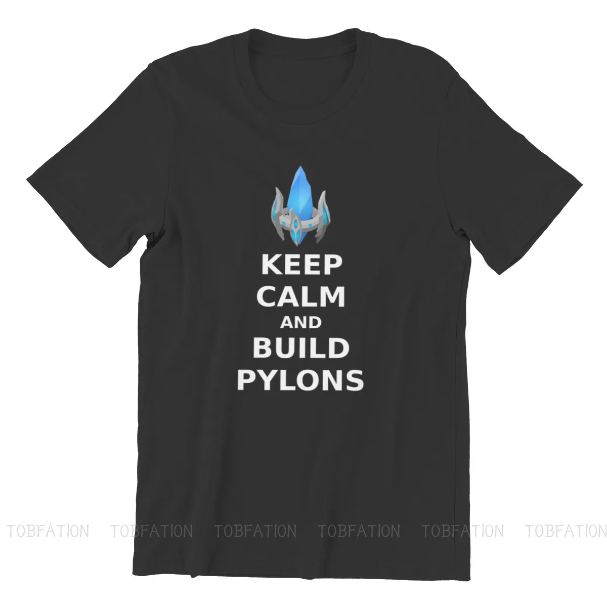 Футболка StarCraft из пилона с надписью Keep Calm and build, Винтажная футболка для подростков, Мужская футболка высокого качества, большие блузки с круглым вырезом