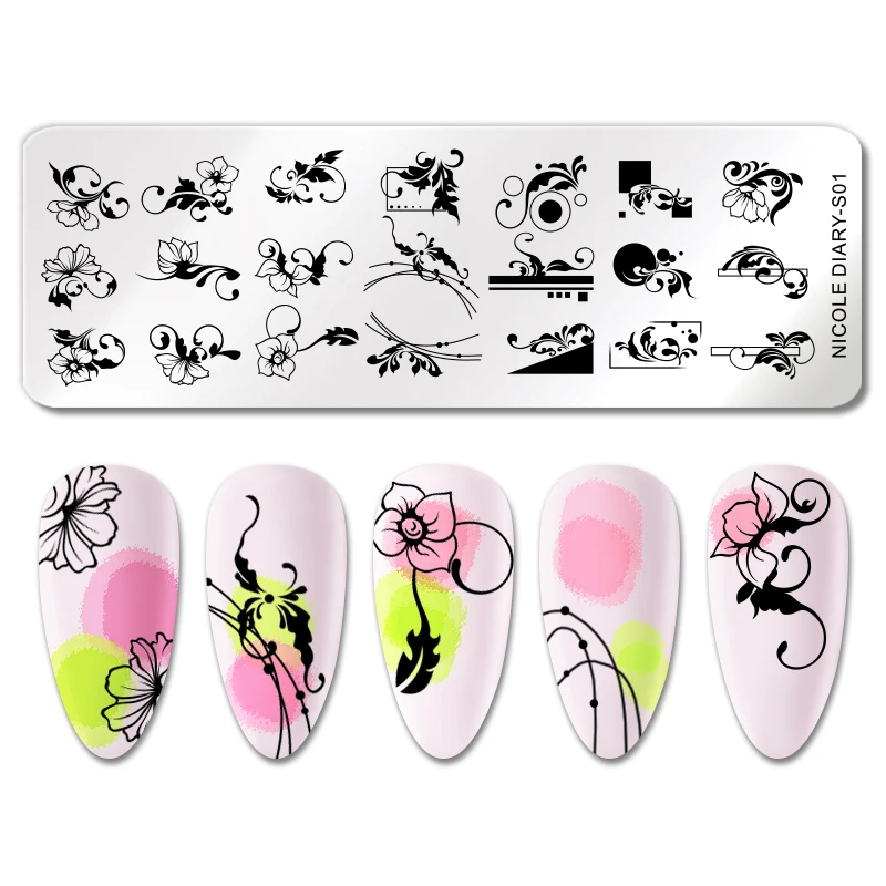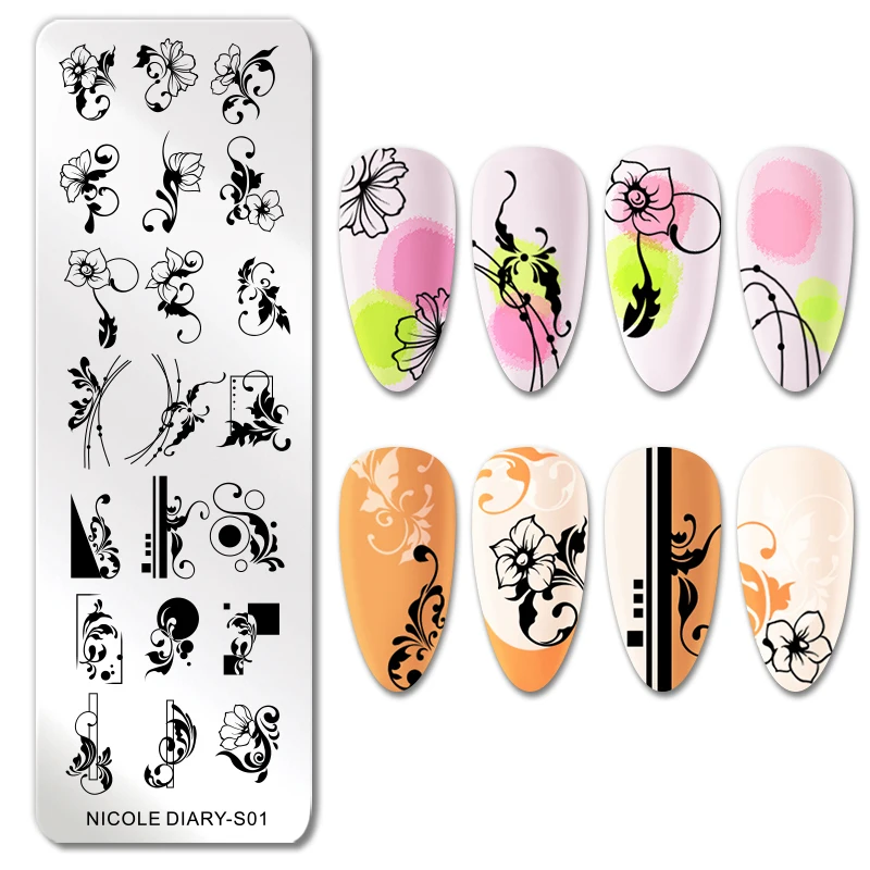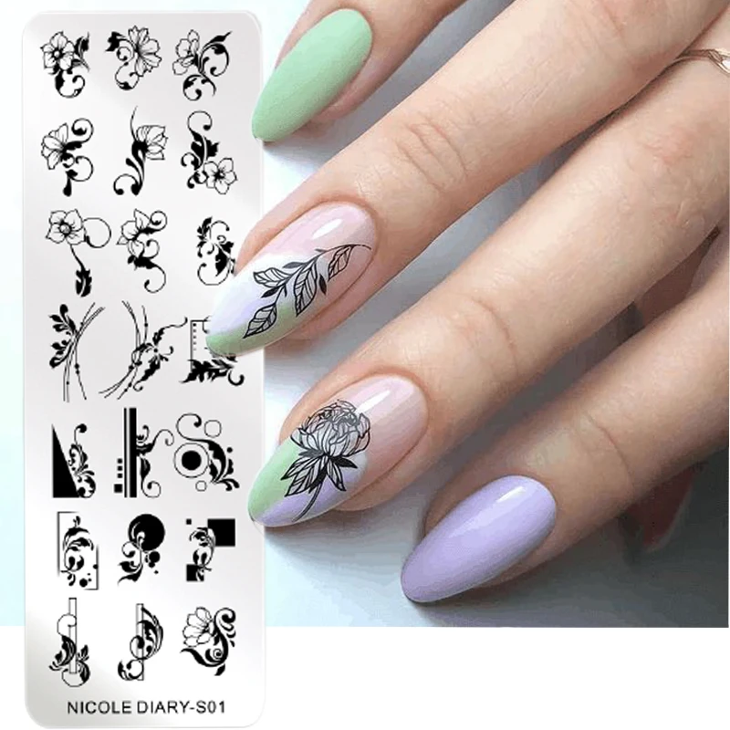Трафареты NICOLE DIARY для стемпинга ногтей из нержавеющей стали