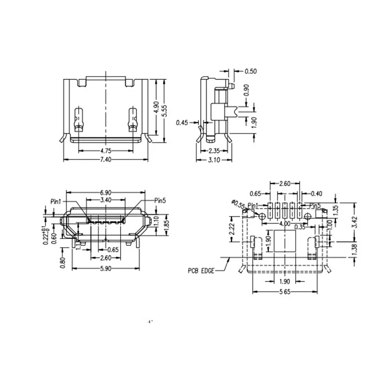 Разъем USB 50 шт.лот, гнездовой разъем, штекер, разъем для передачи данных телефона Android, 5-контактный Micro-B SMD Micro